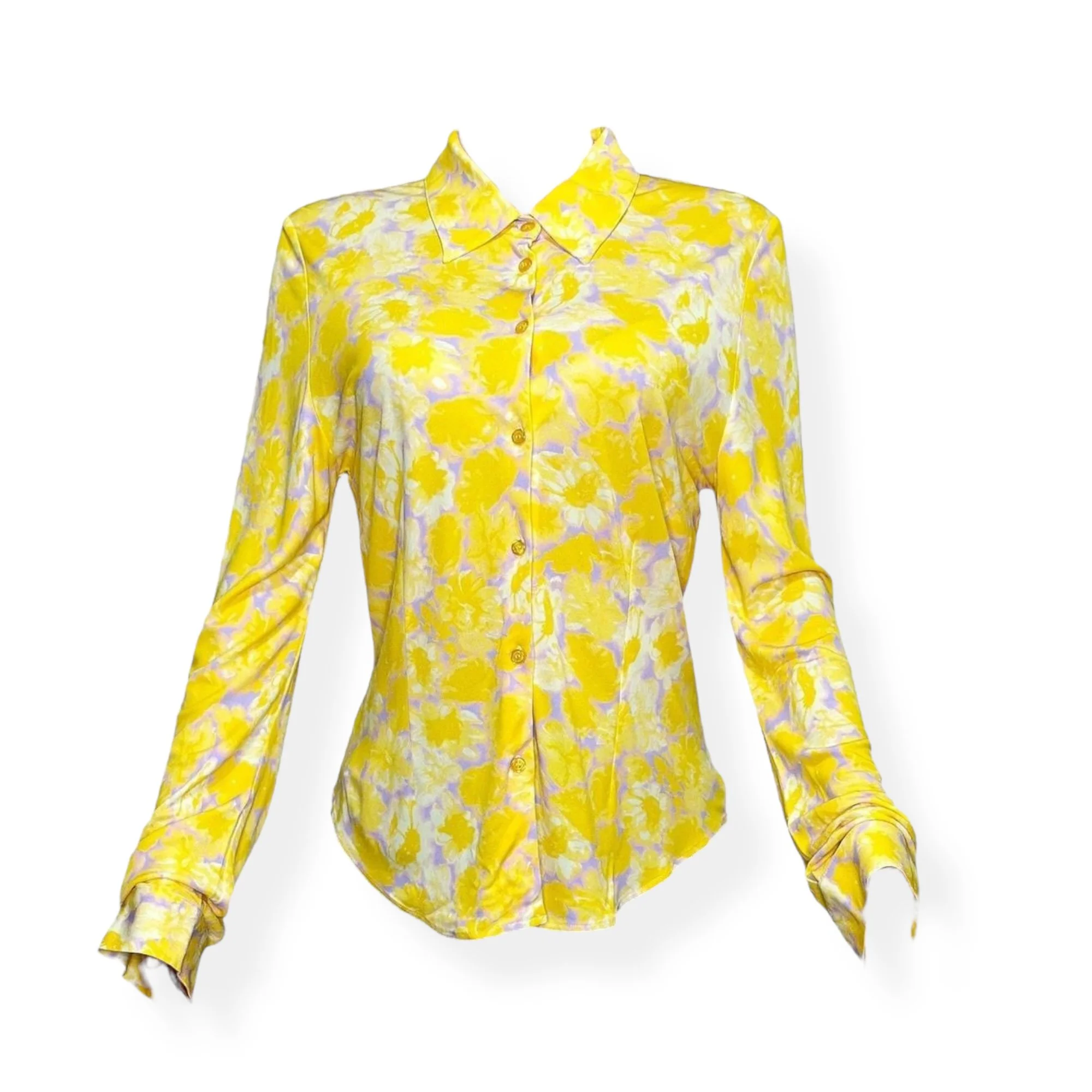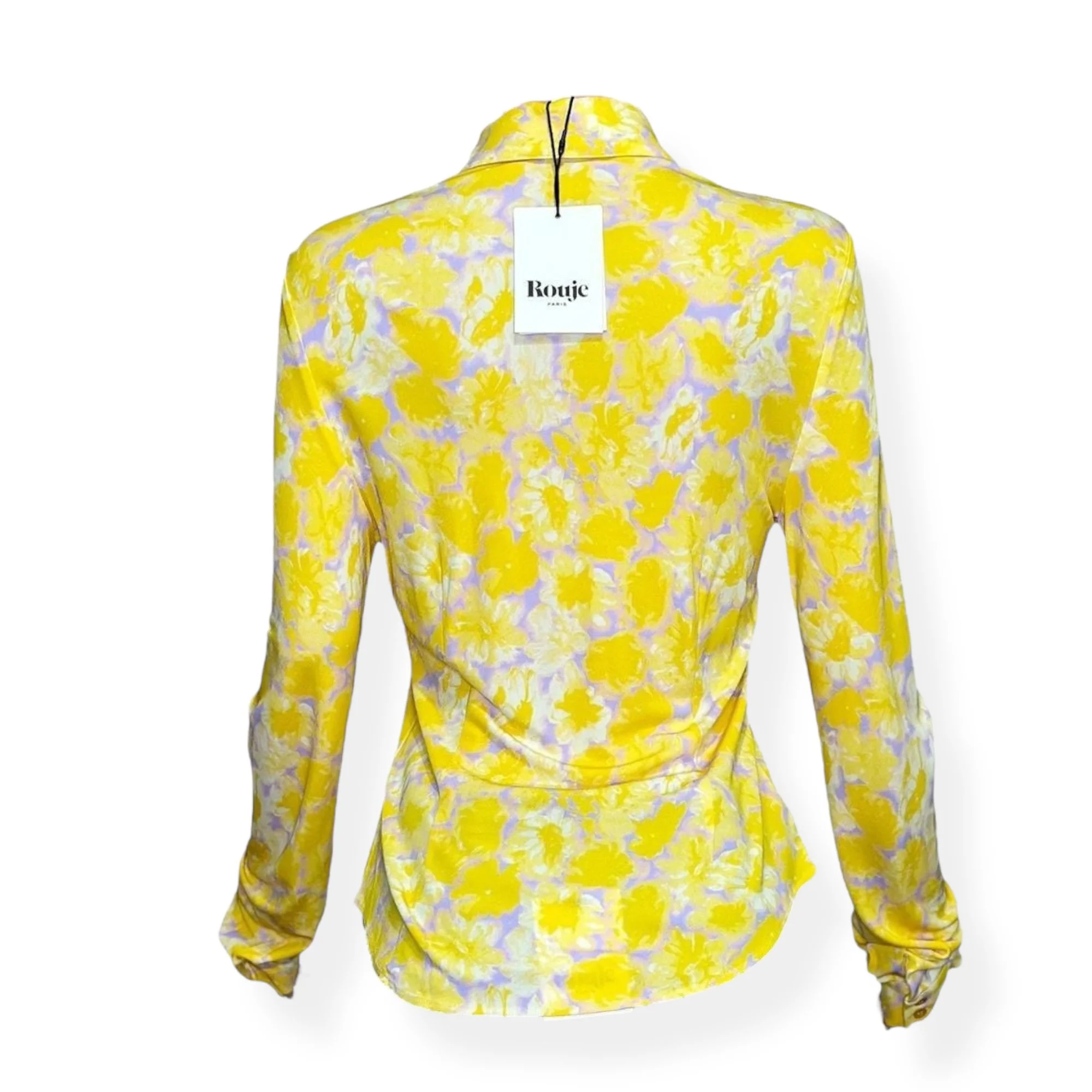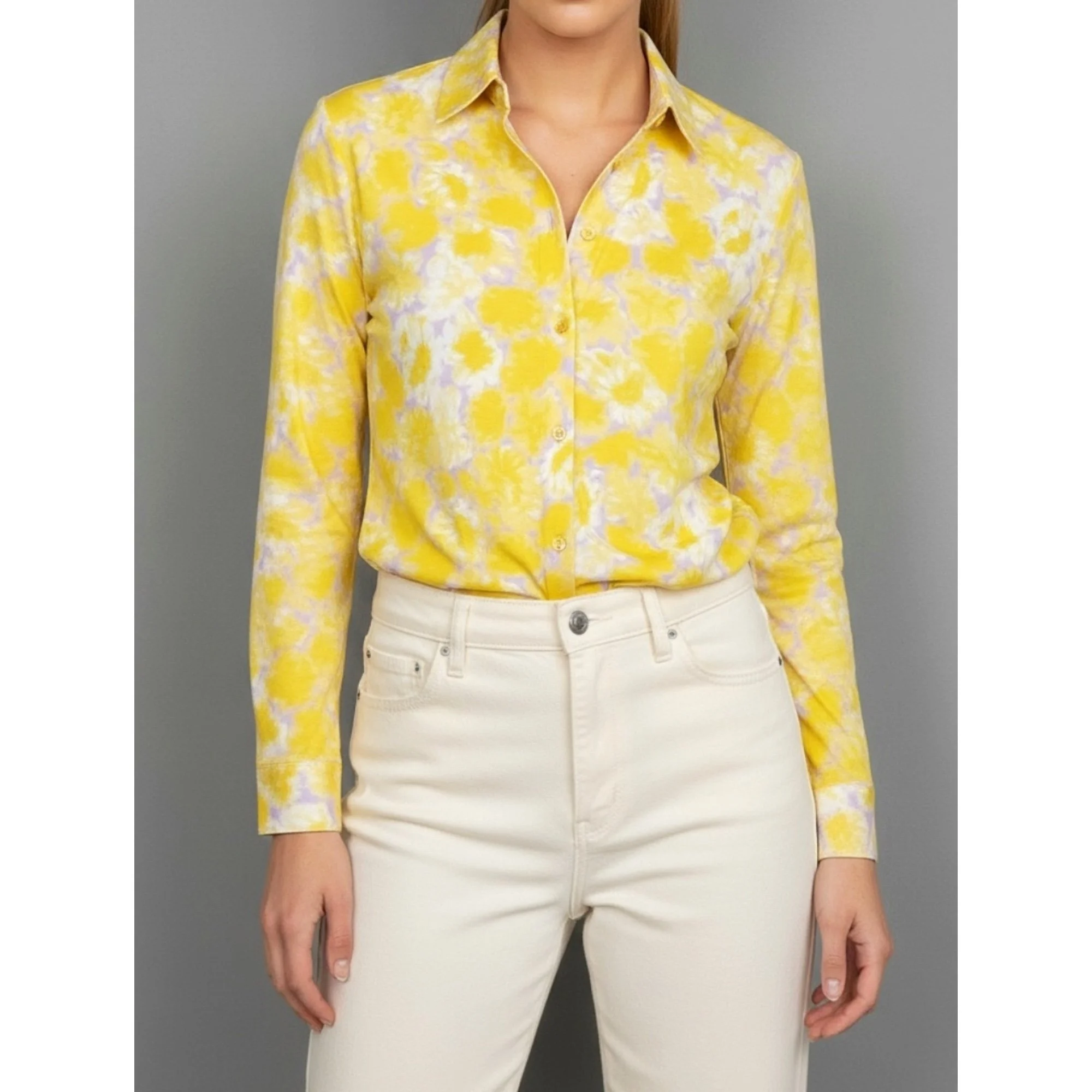 ROUJE PARIS Palmyra Long Sleeve Shirt, Yellow Watercolor Peony Print, FR44/US12