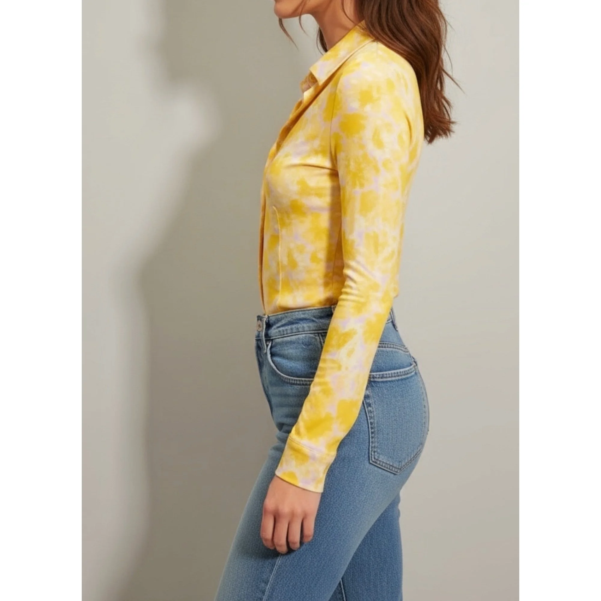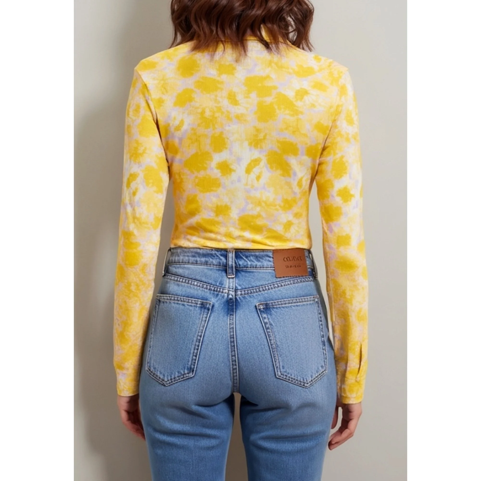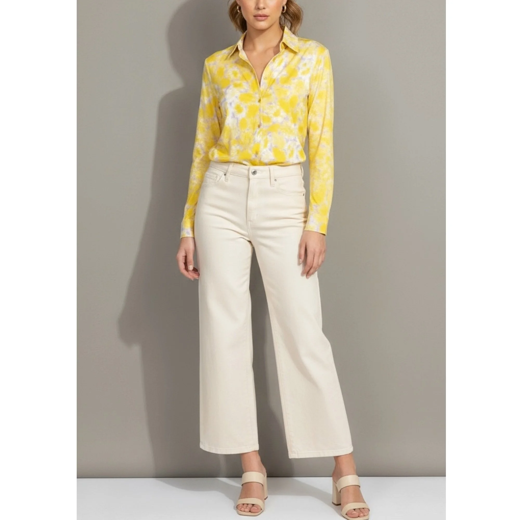 ROUJE PARIS Palmyra Long Sleeve Shirt, Yellow Watercolor Peony Print, FR44/US12