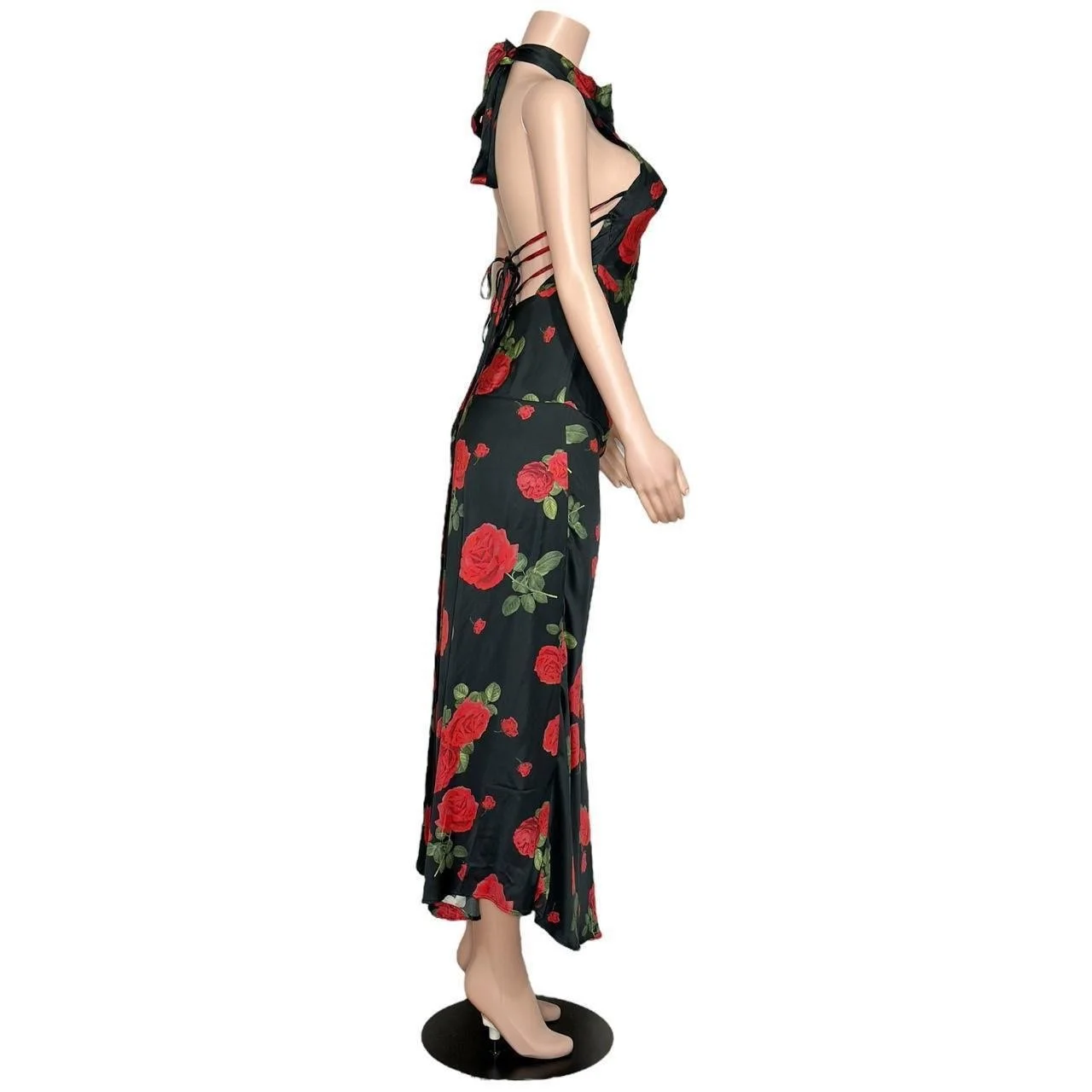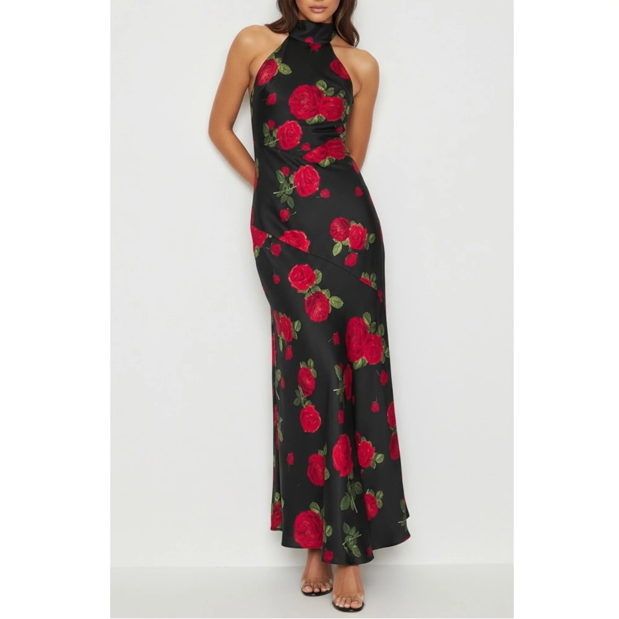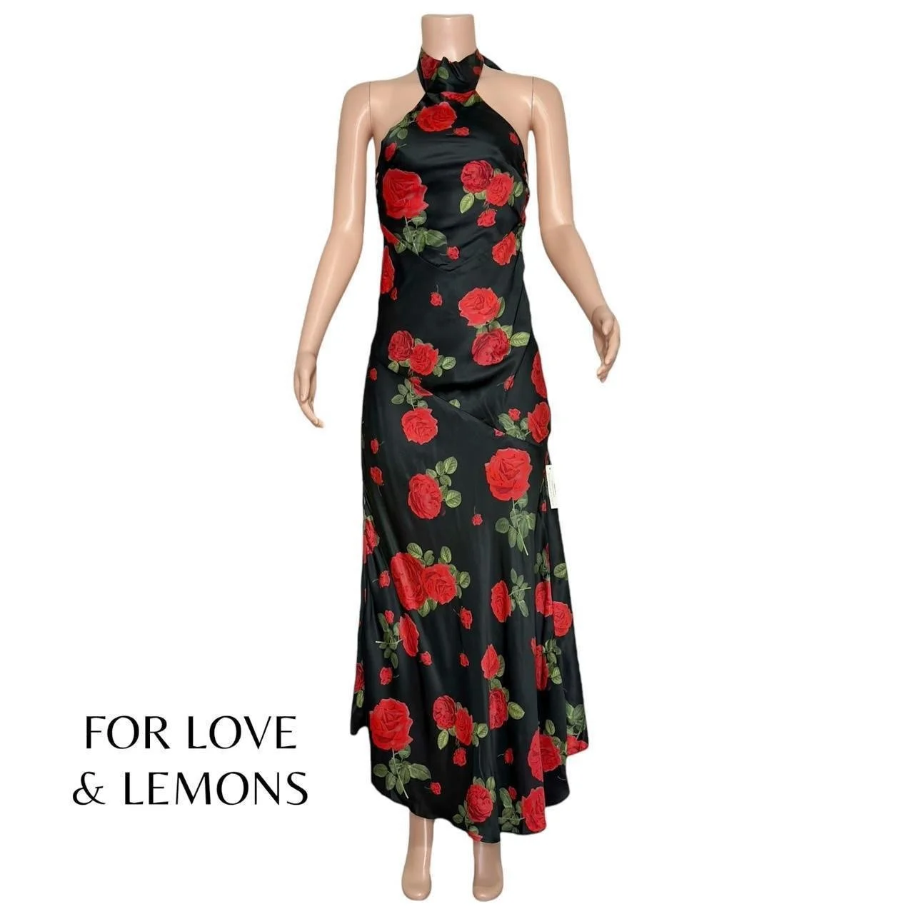 FOR LOVE & LEMONS Astoria Maxi Dress, Black/Red Floral, XS
