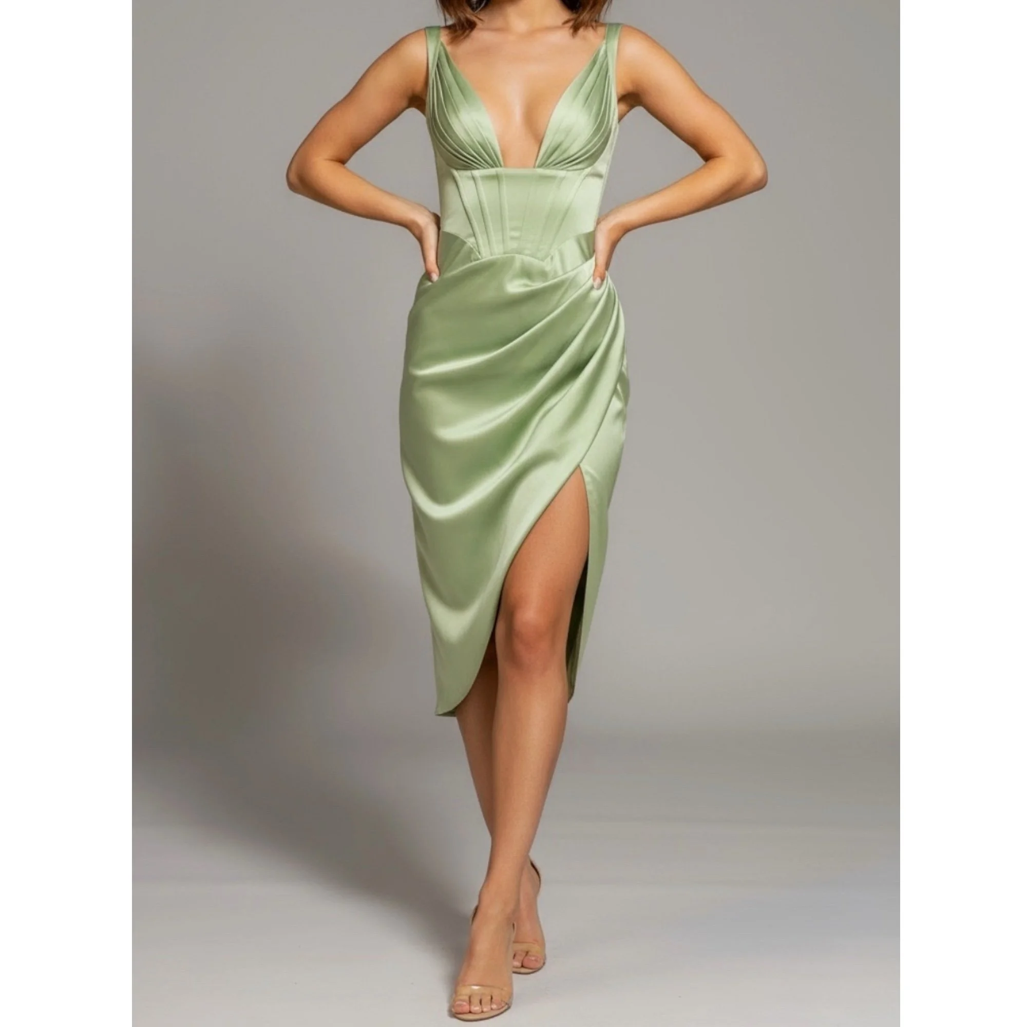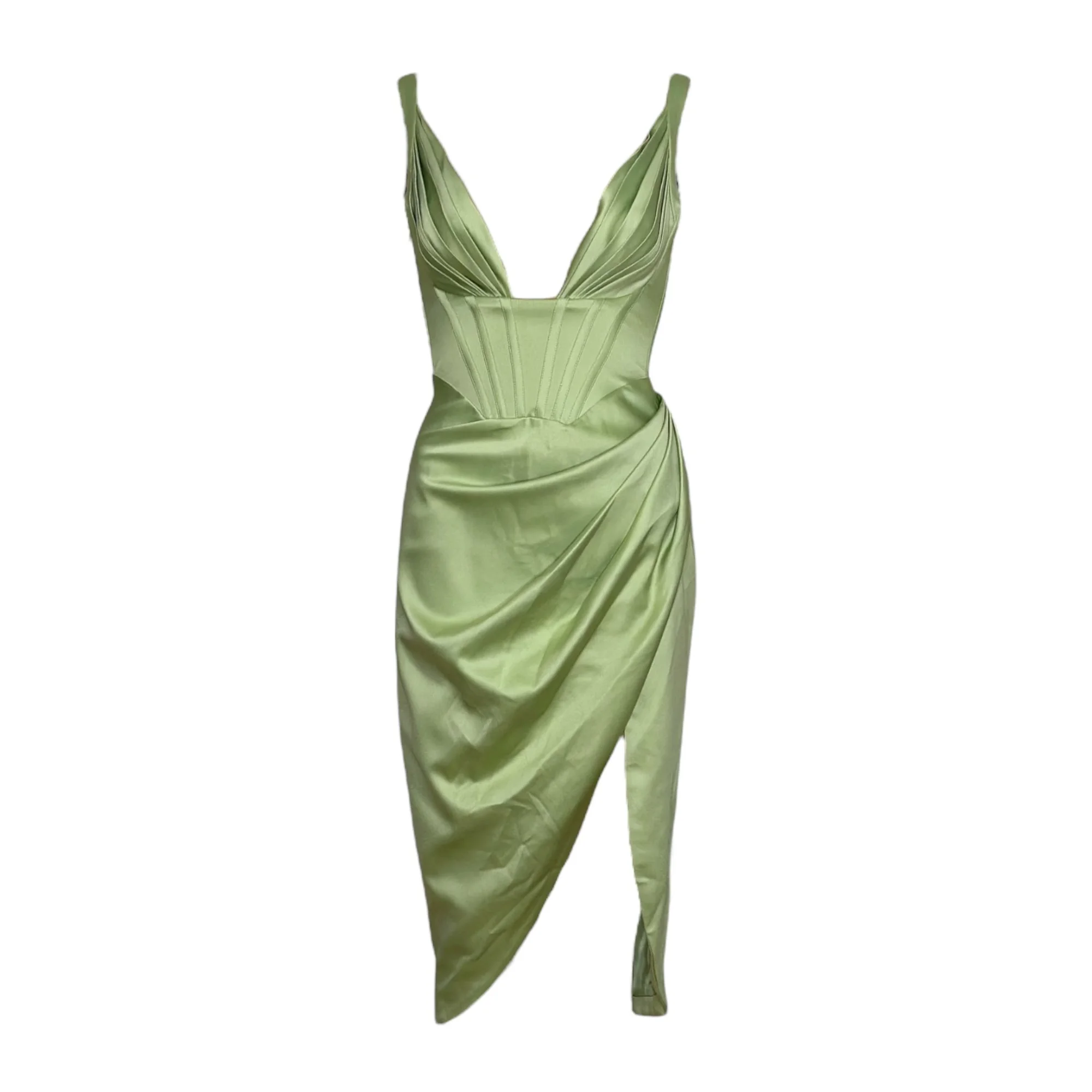 HOUSE OF CB Faye Satin Corset Dress, Pistachio, XS