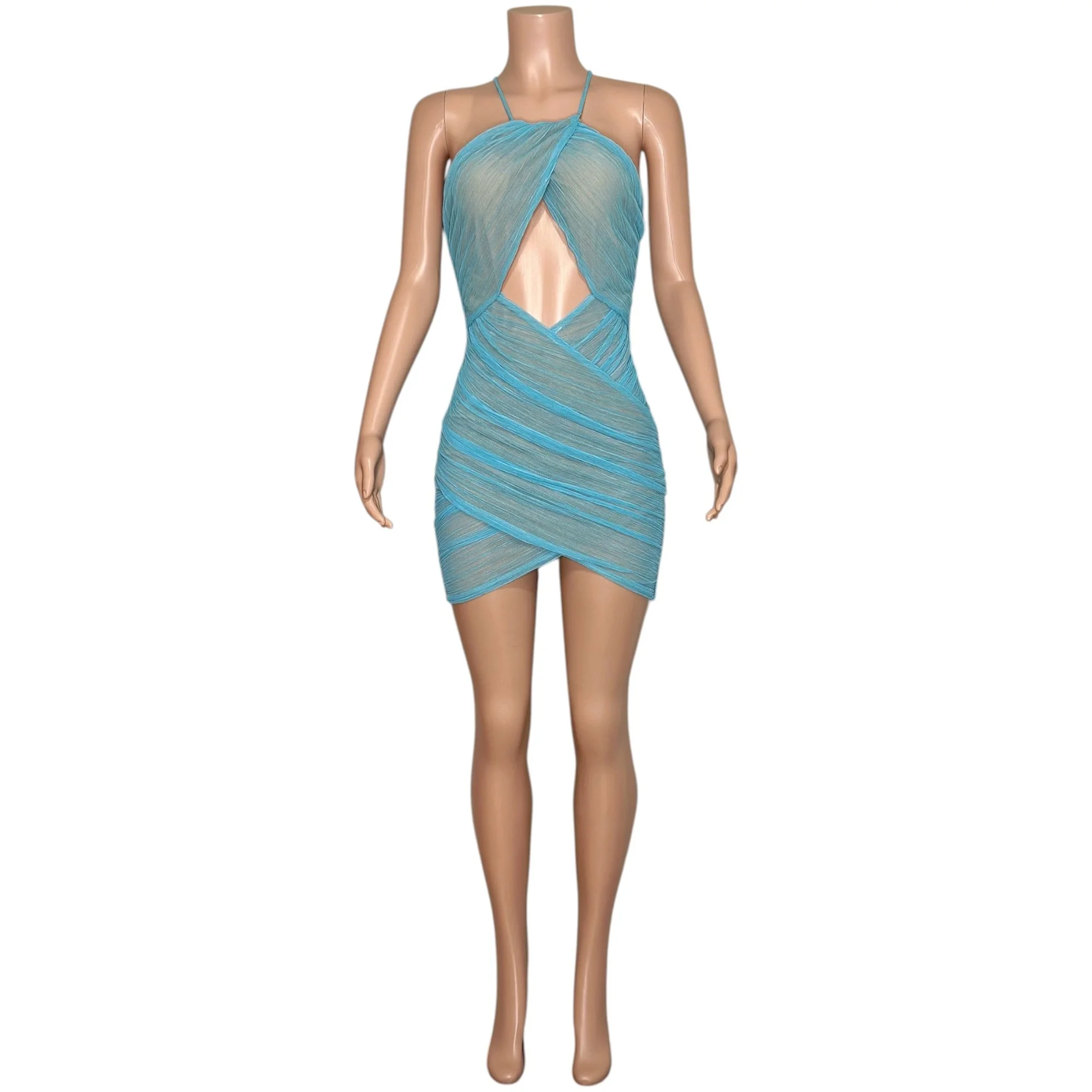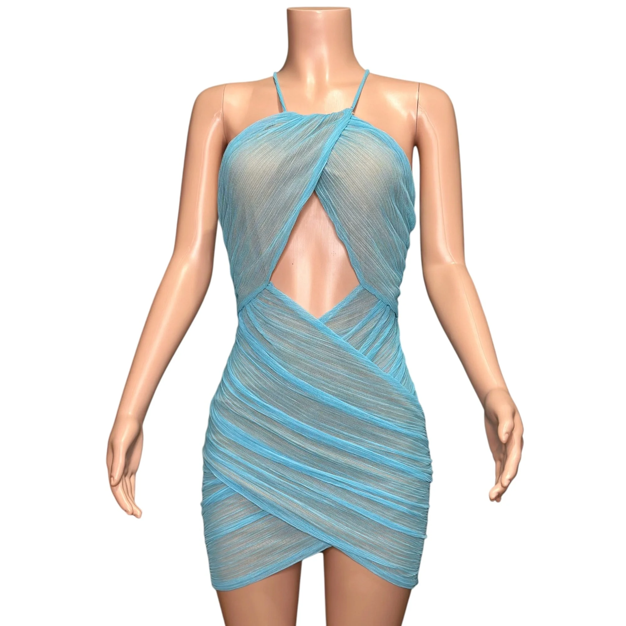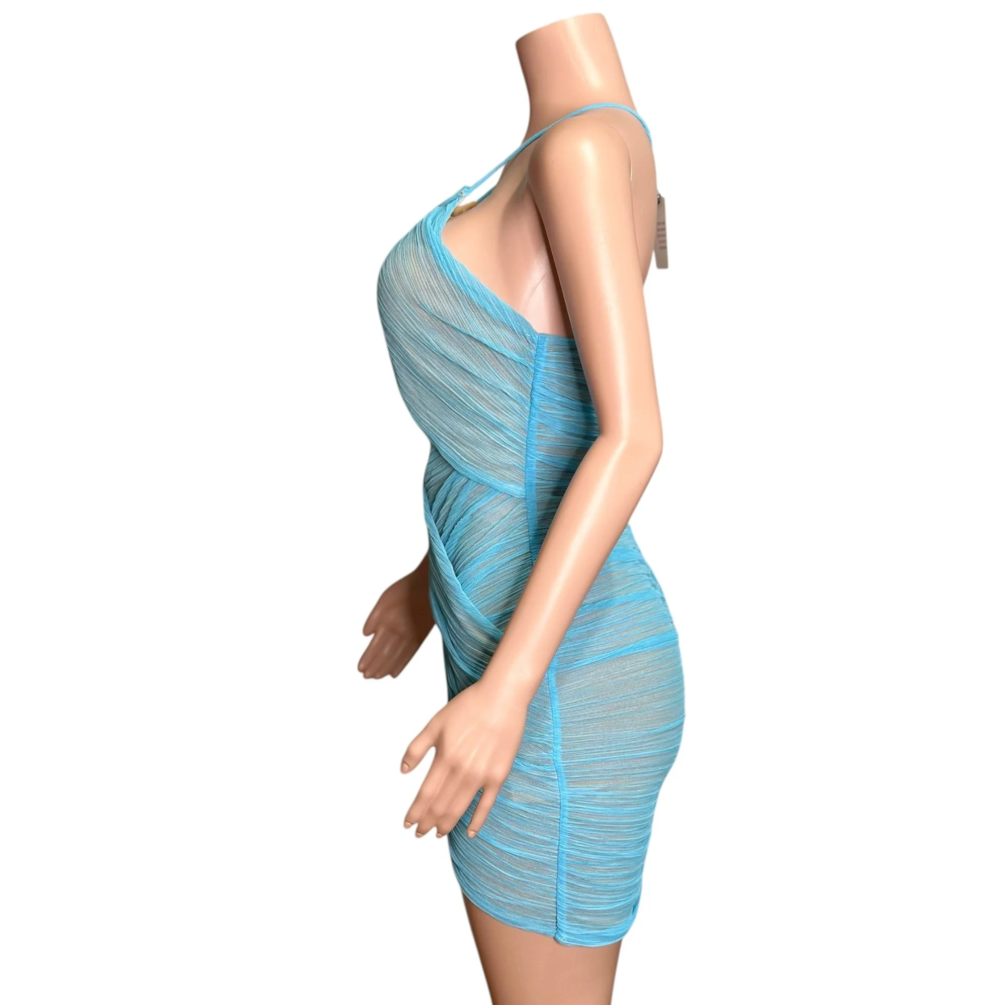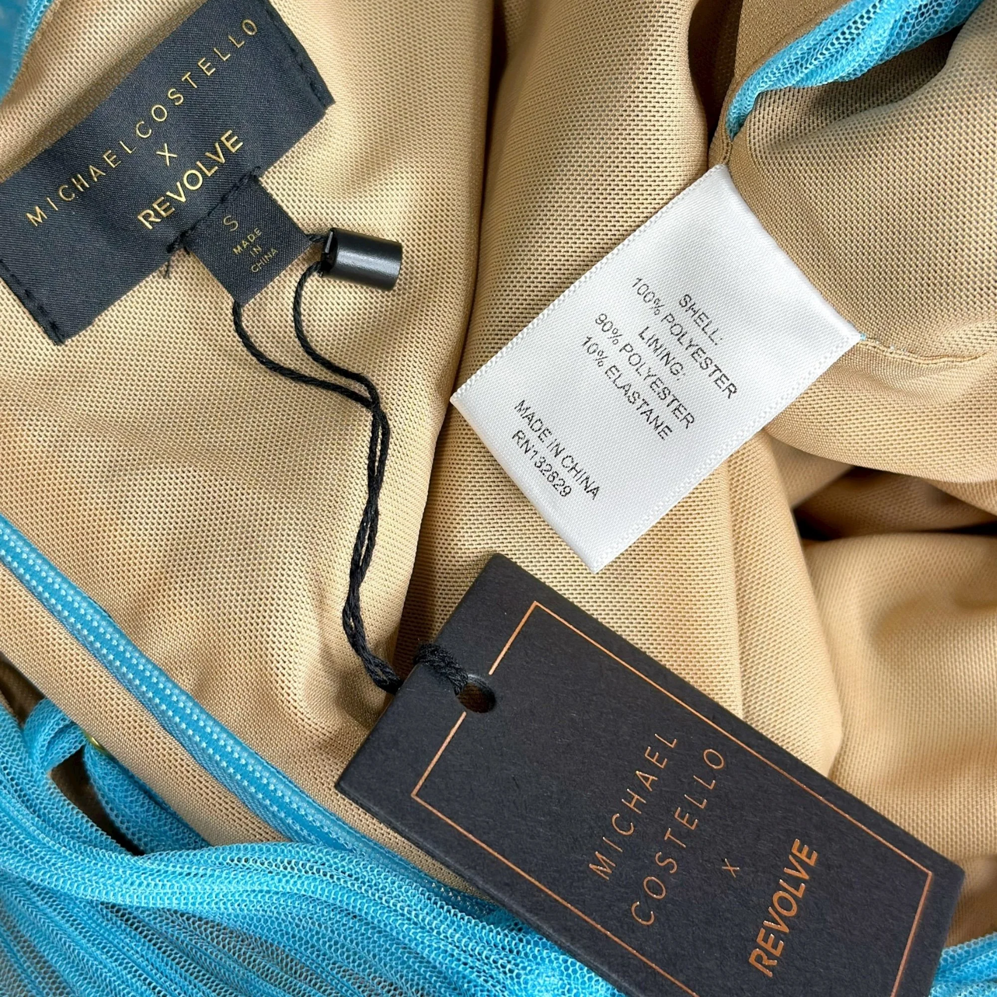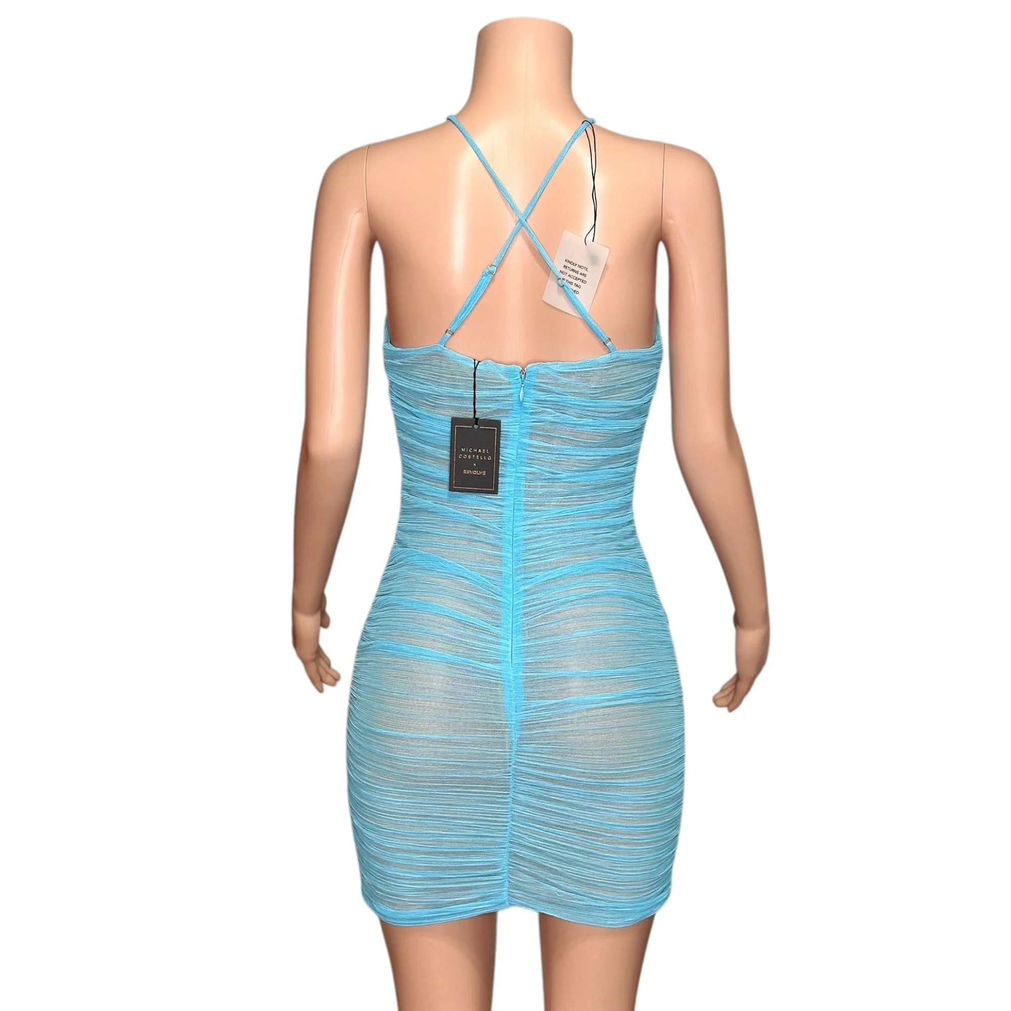 MICHAEL COSTELLO x REVOLVE Bia Cut-Out Ruched Mesh Mini Dress, Aqua, Small