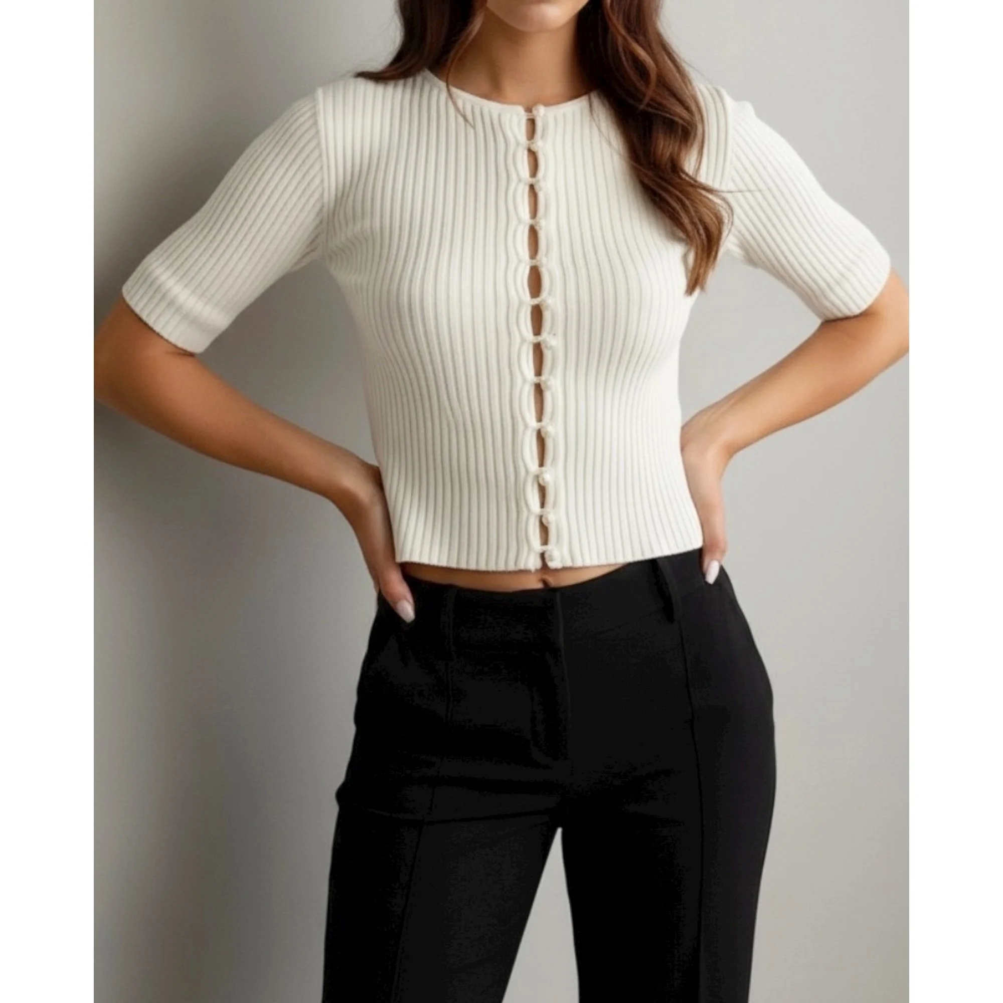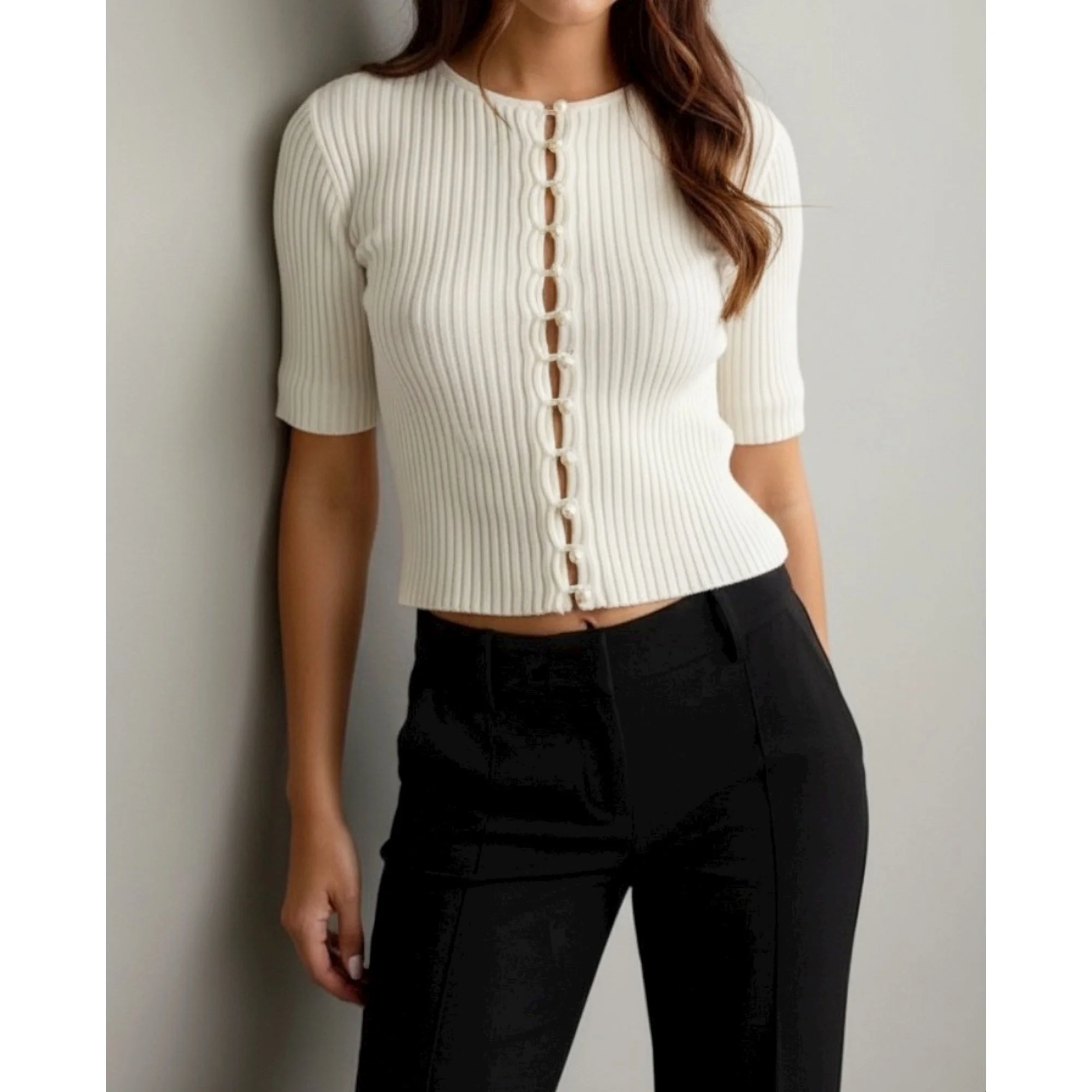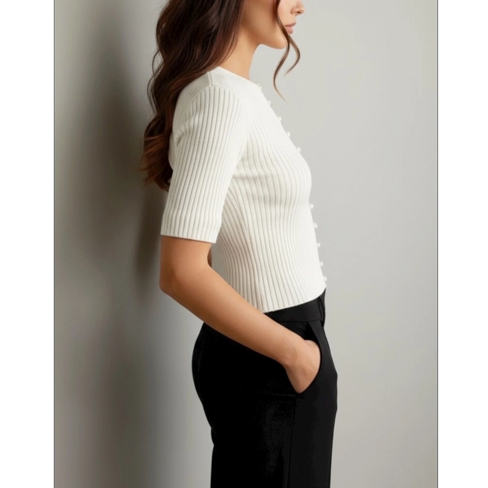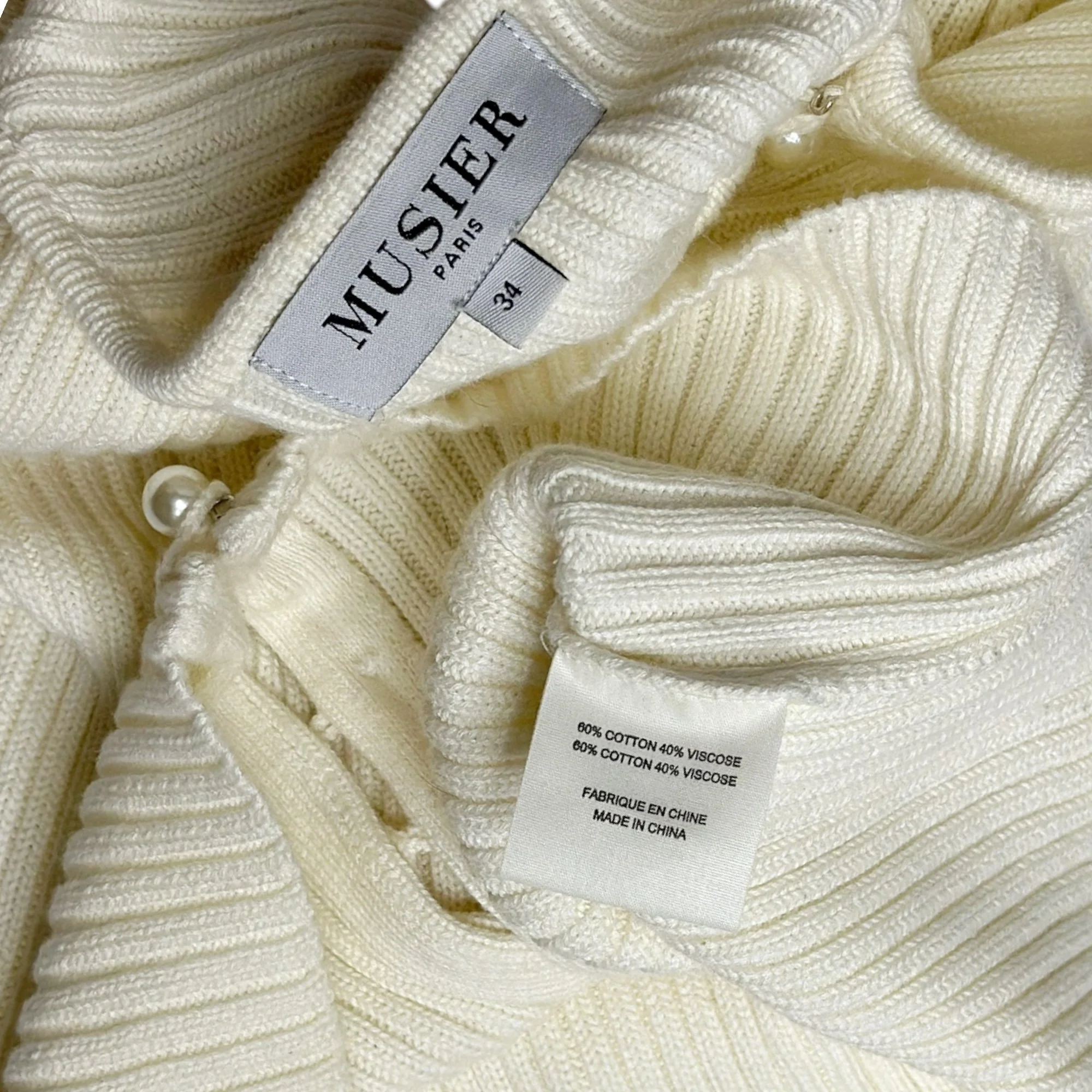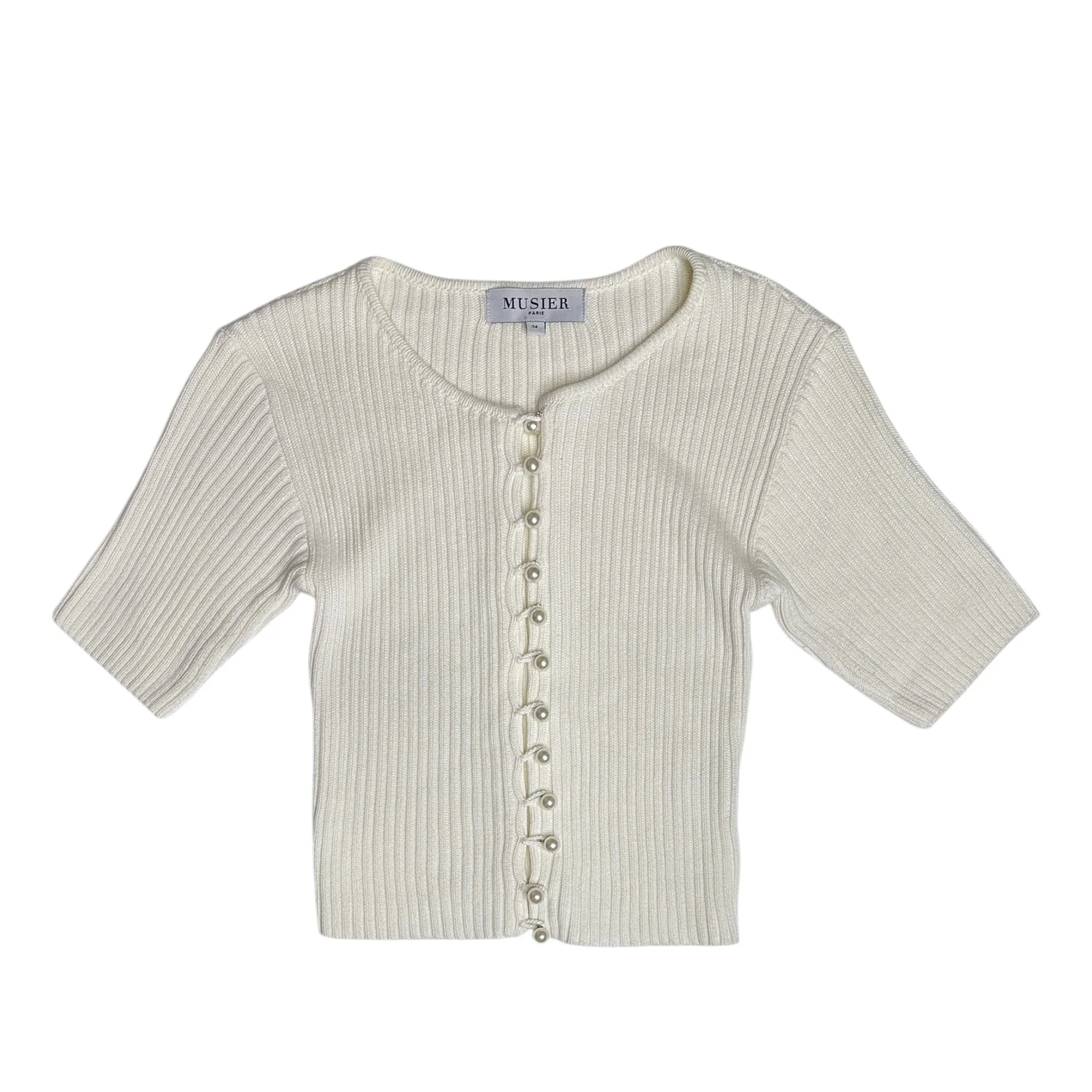 MUSIER PARIS Charlotte Pearl Embellished Ribbed Cardigan, Ecru, FR34/US2