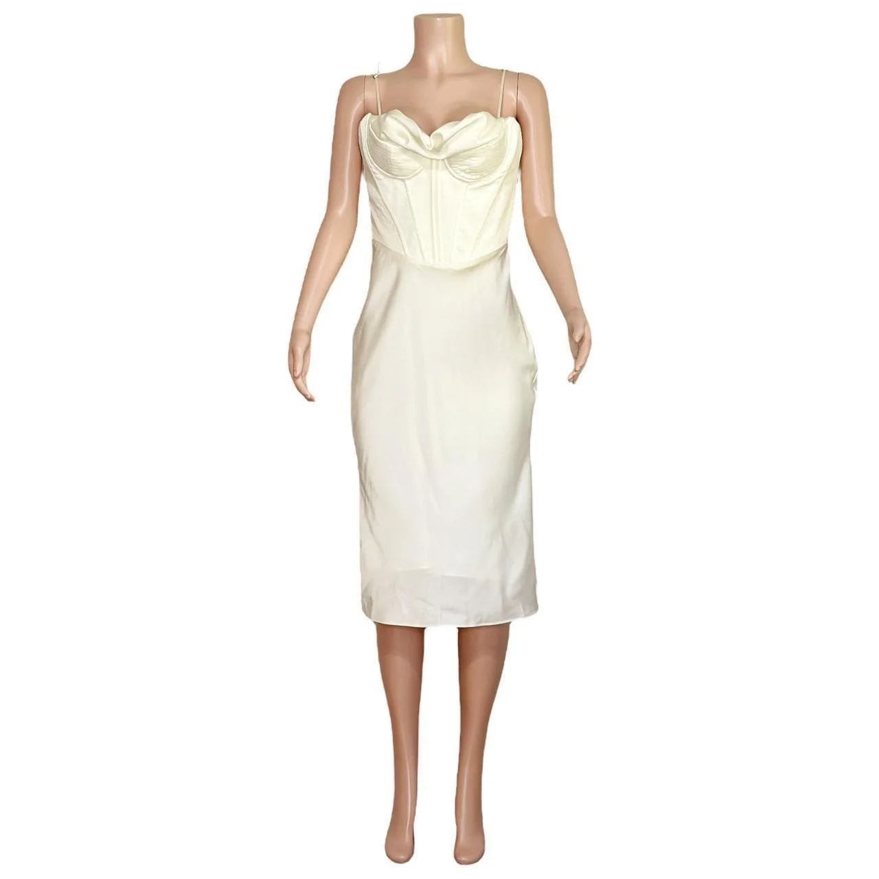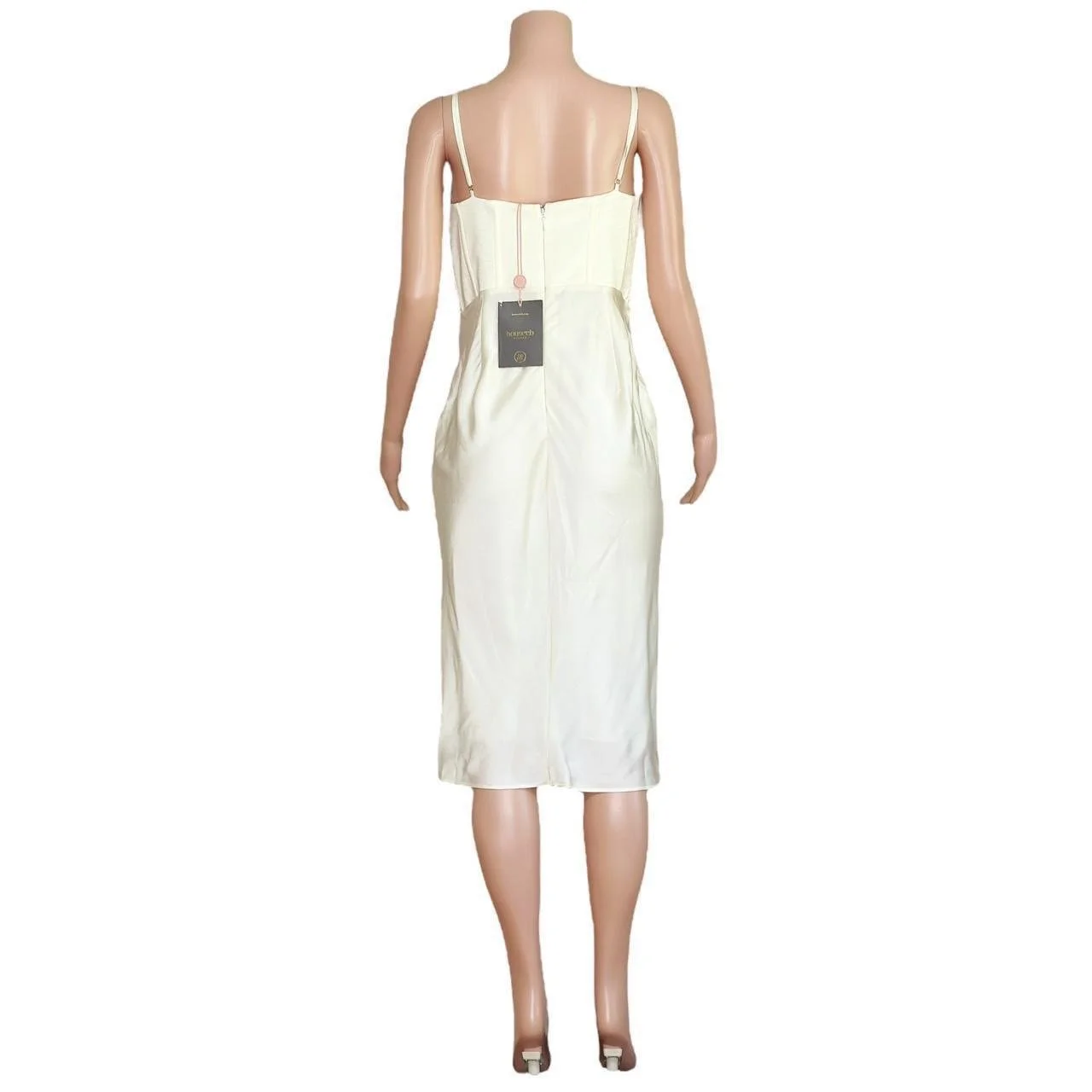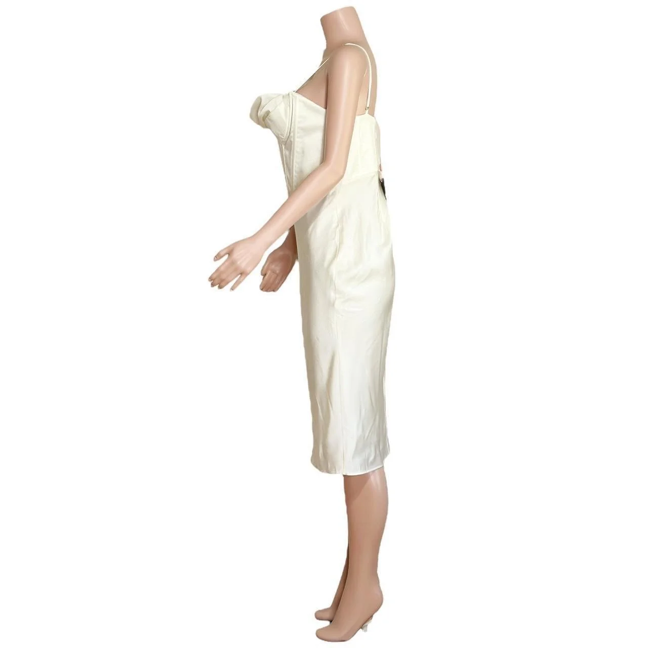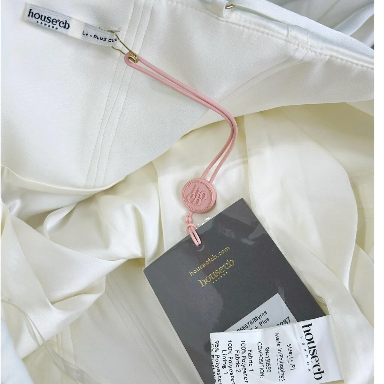 HOUSE OF CB Myrna Corset Slip Dress, Ivory, L (Plus Cup)