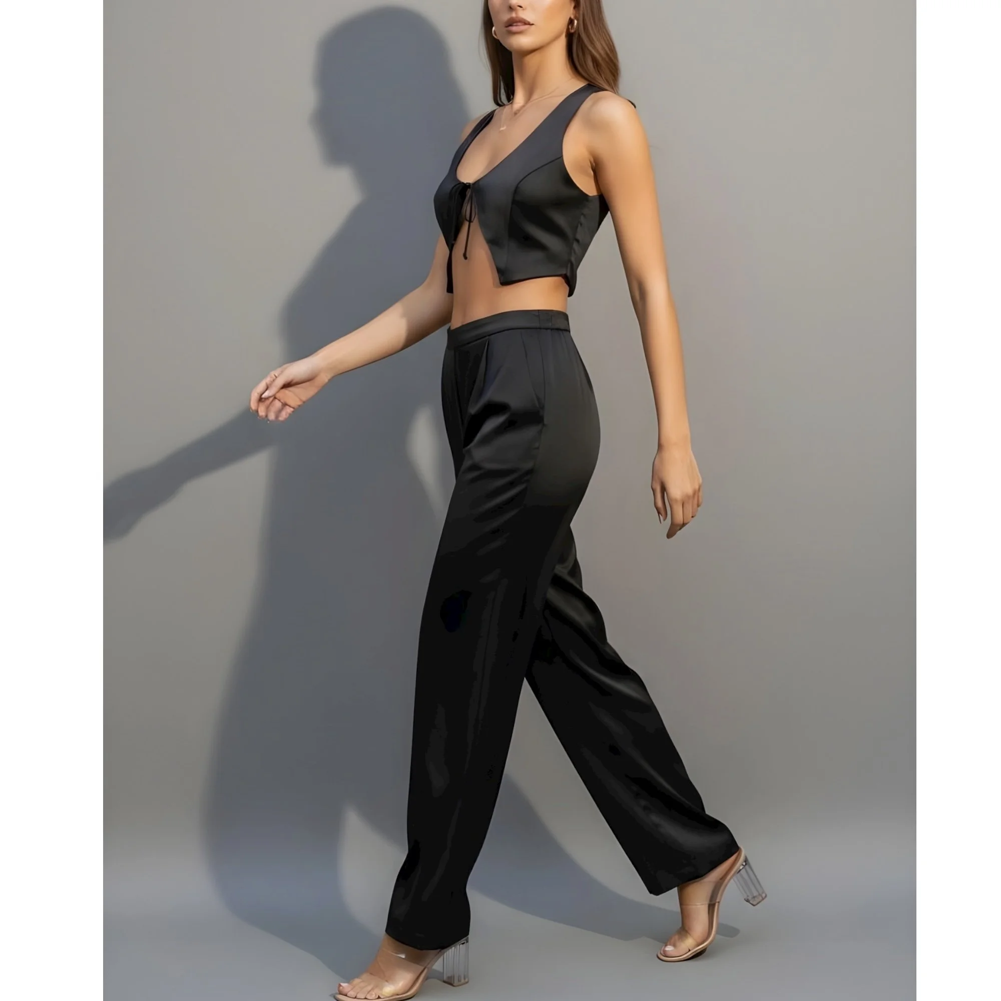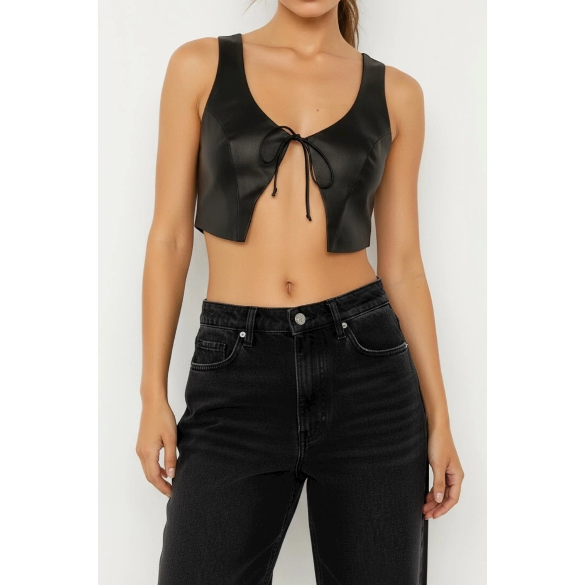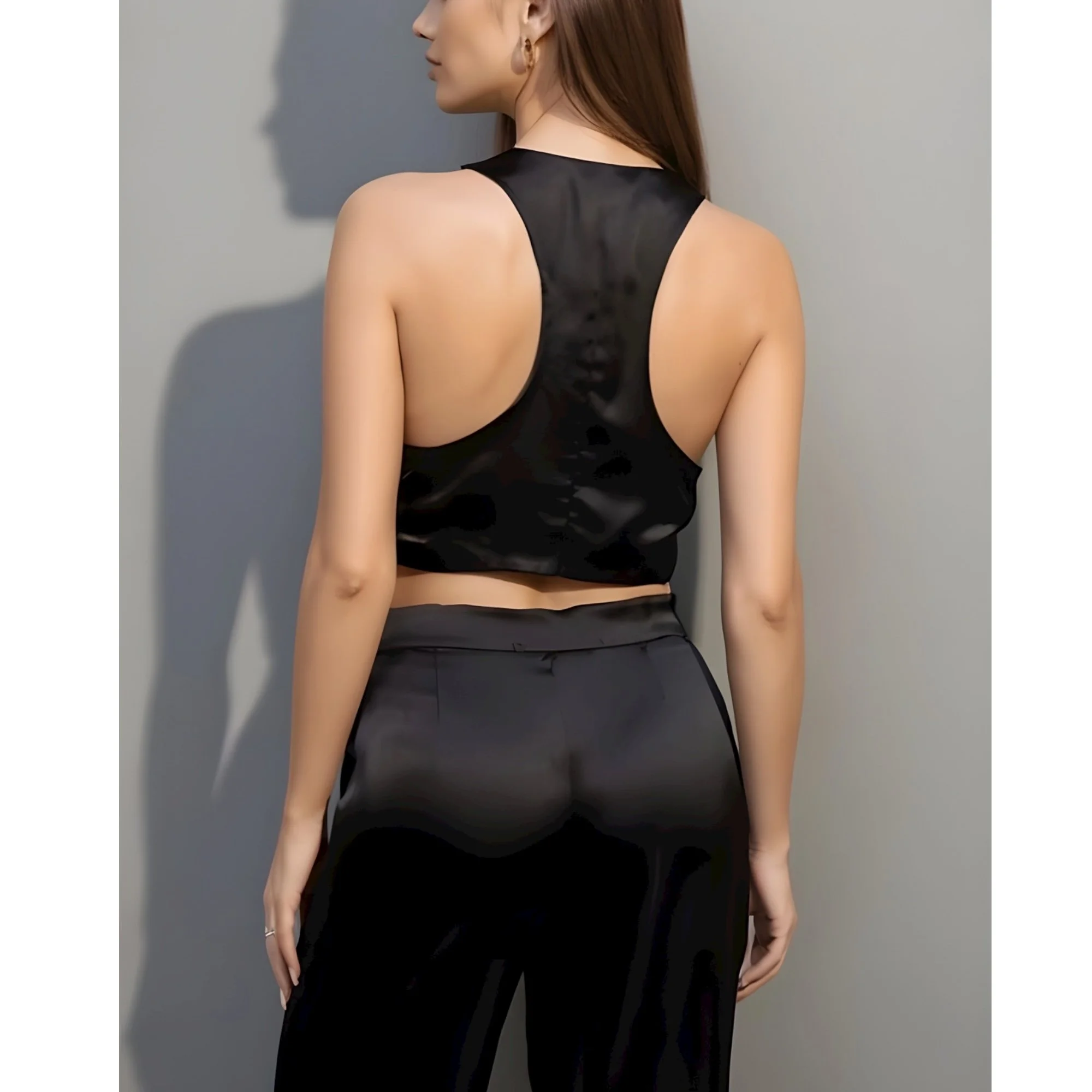 ARE YOU AM I Kih Silk Satin Vest - Black