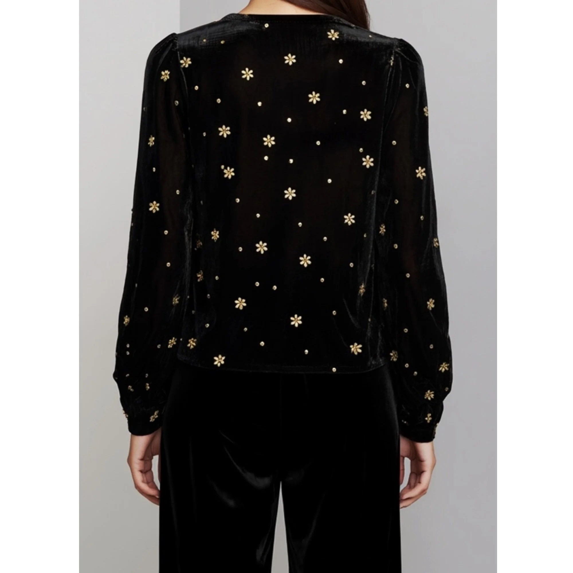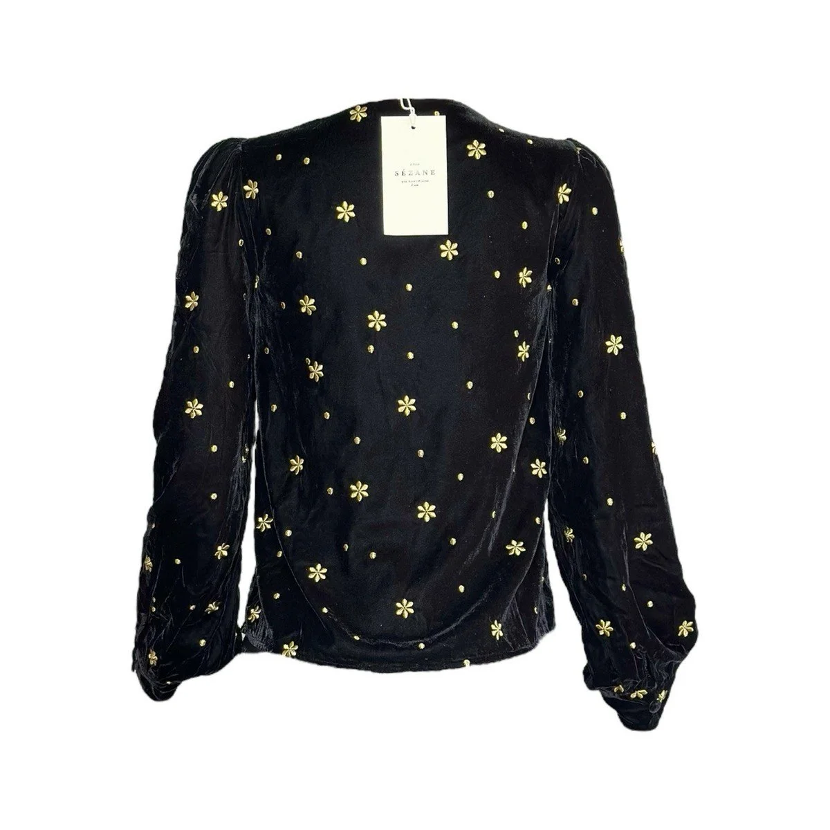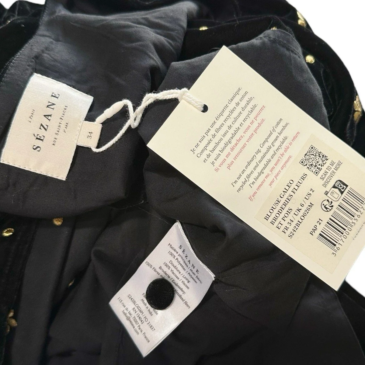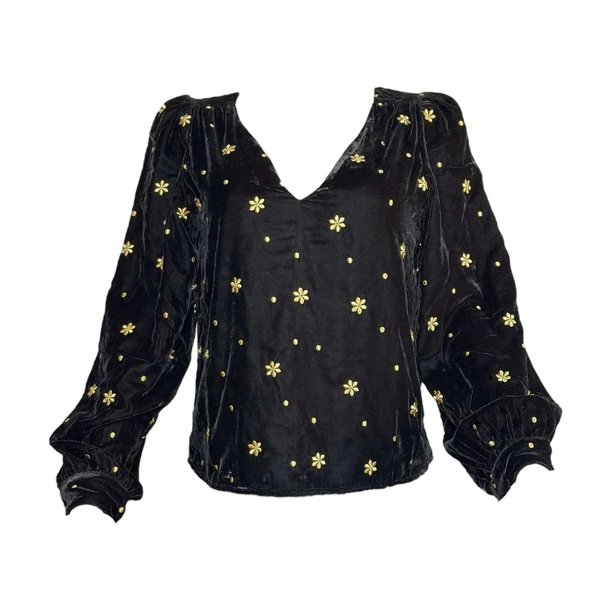 SÉZANE Galeo Velvet Blouse, Embroidered Flower & Polka Dot, FR34/US2