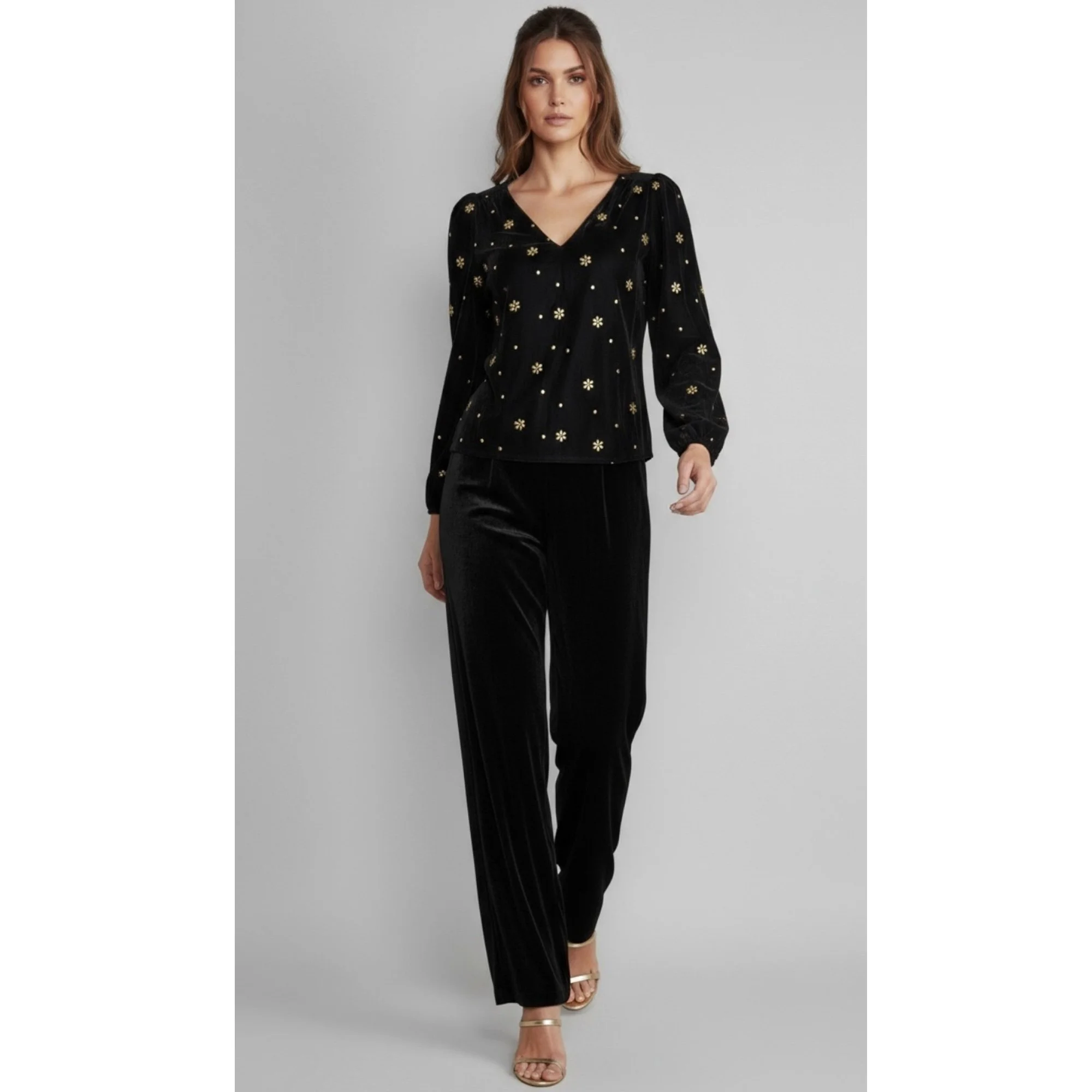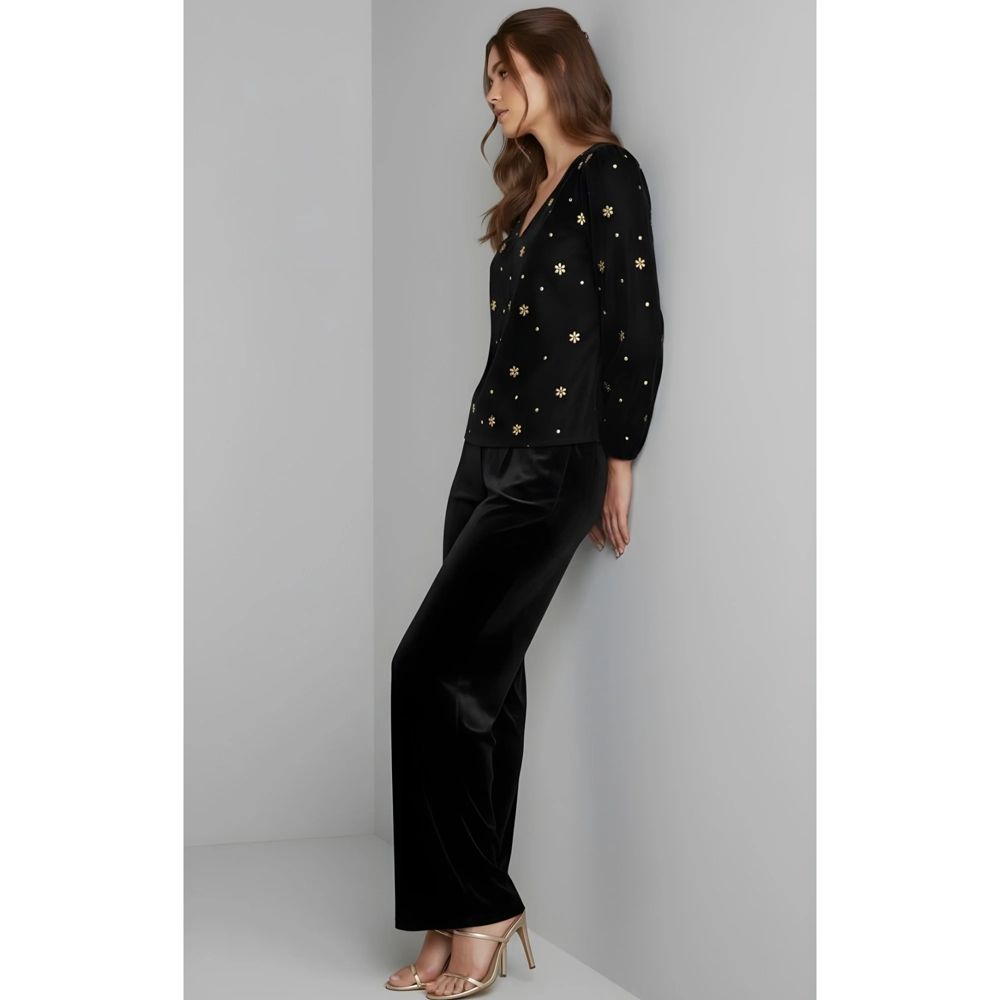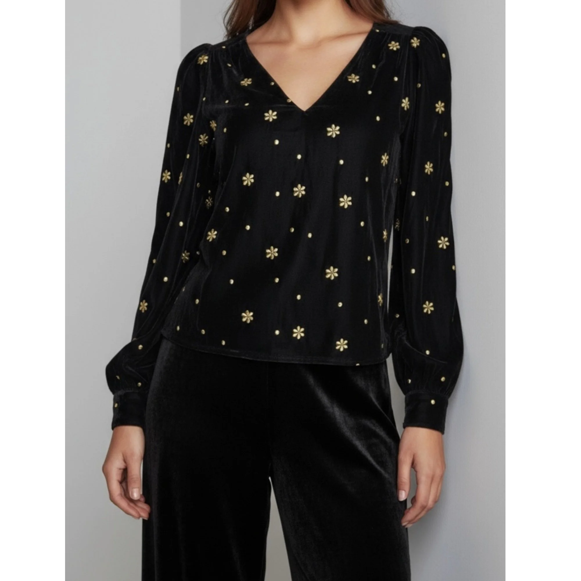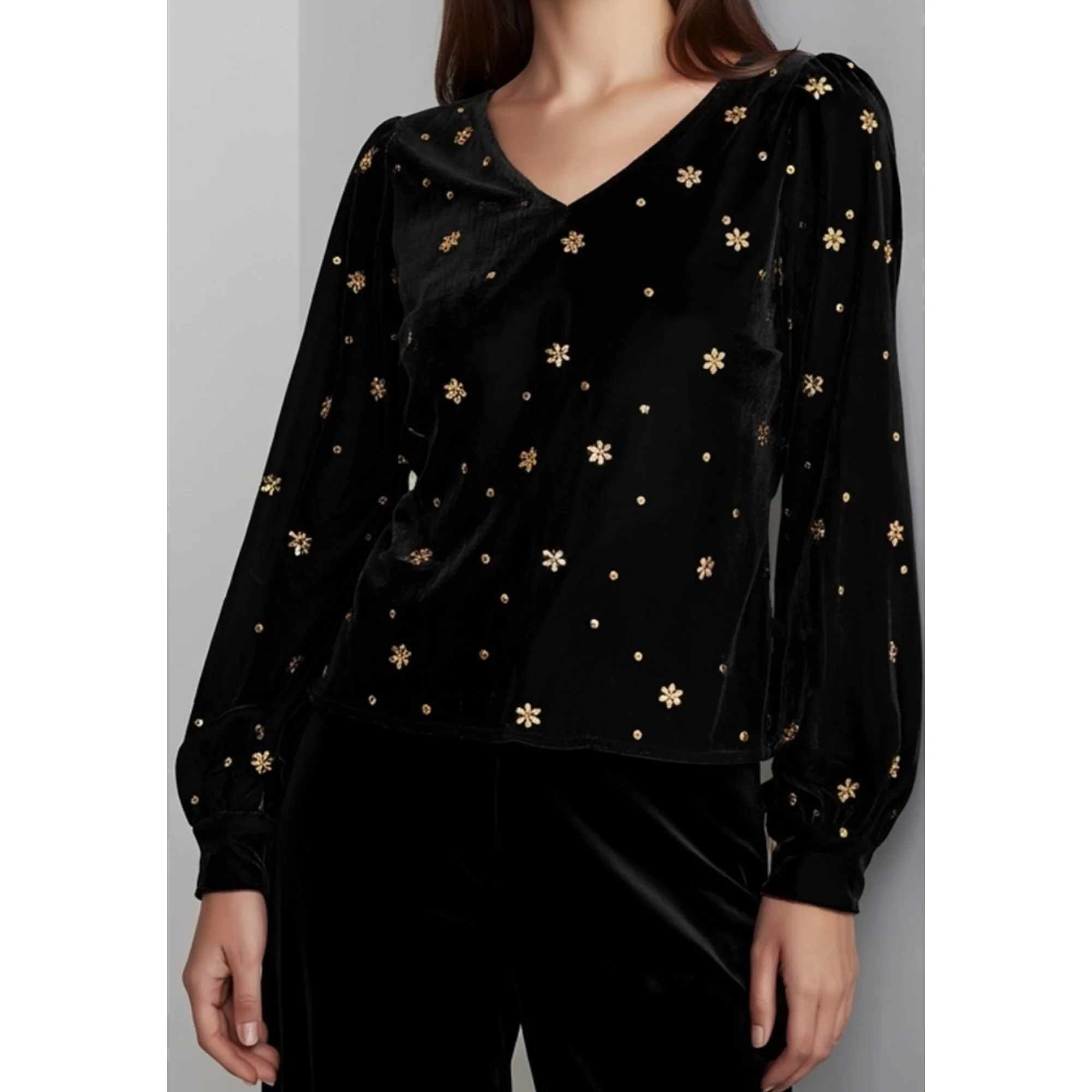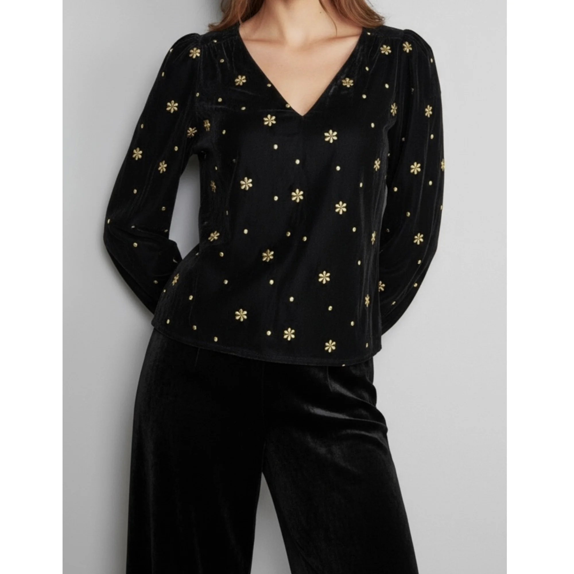 SÉZANE Galeo Velvet Blouse, Embroidered Flower & Polka Dot, FR34/US2