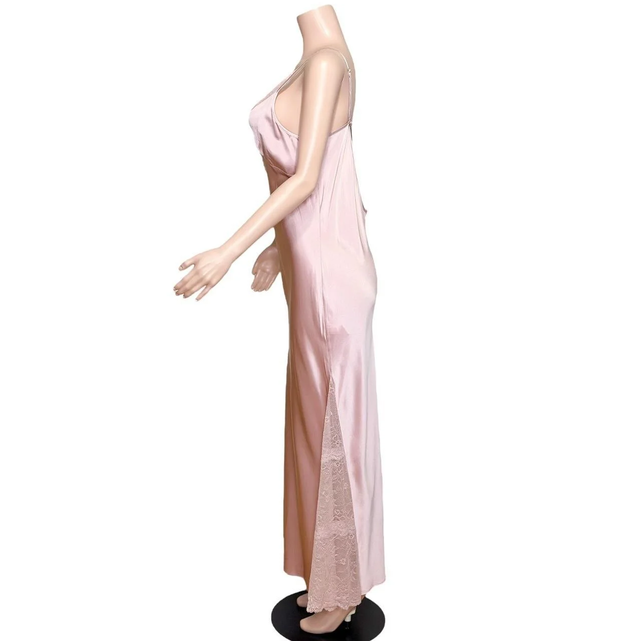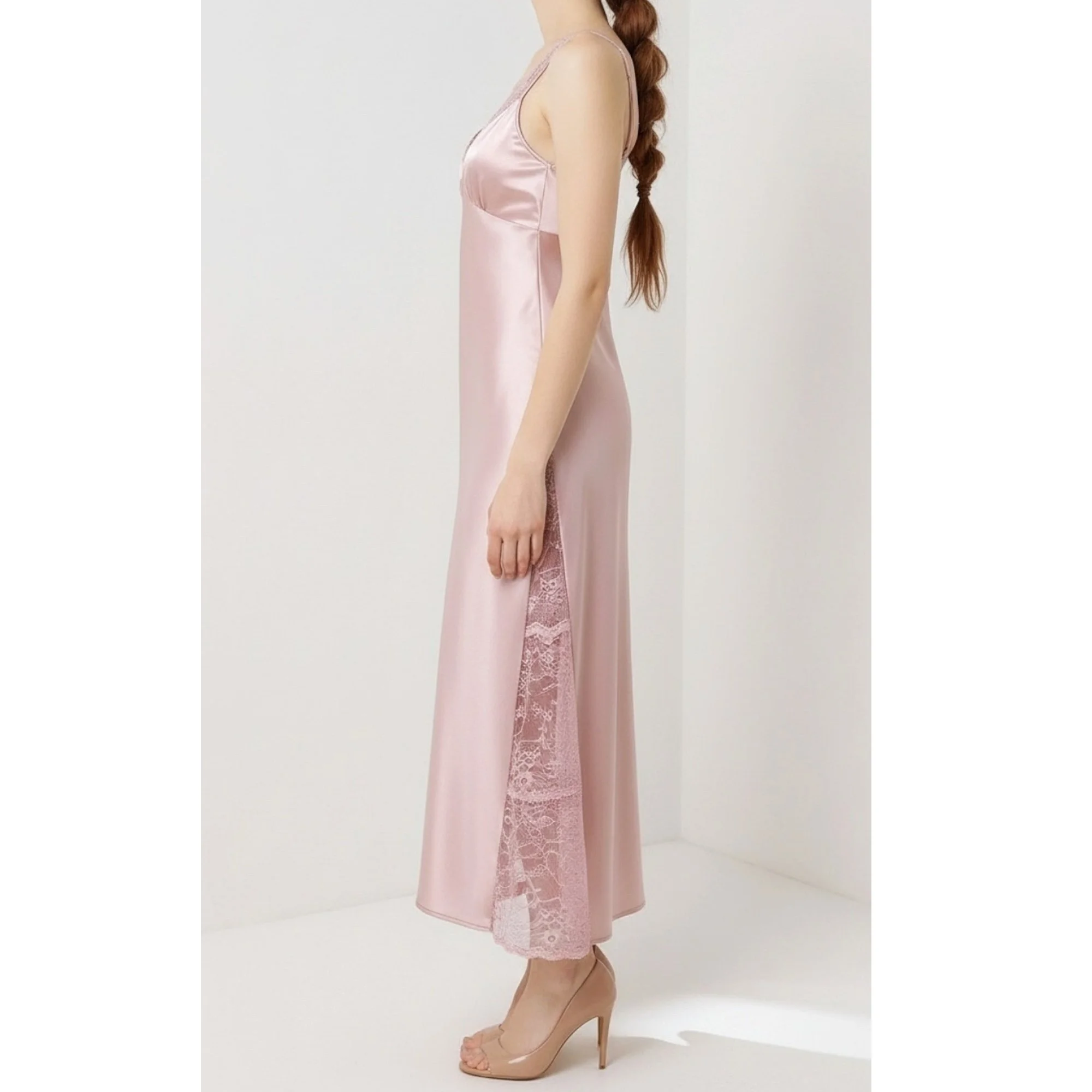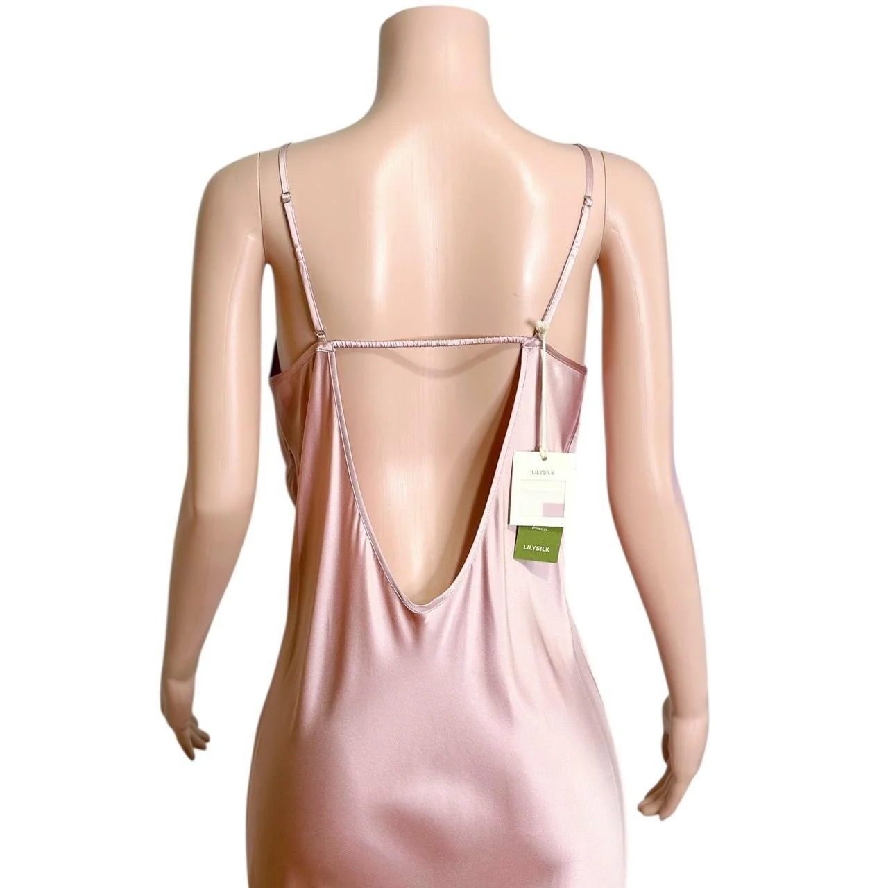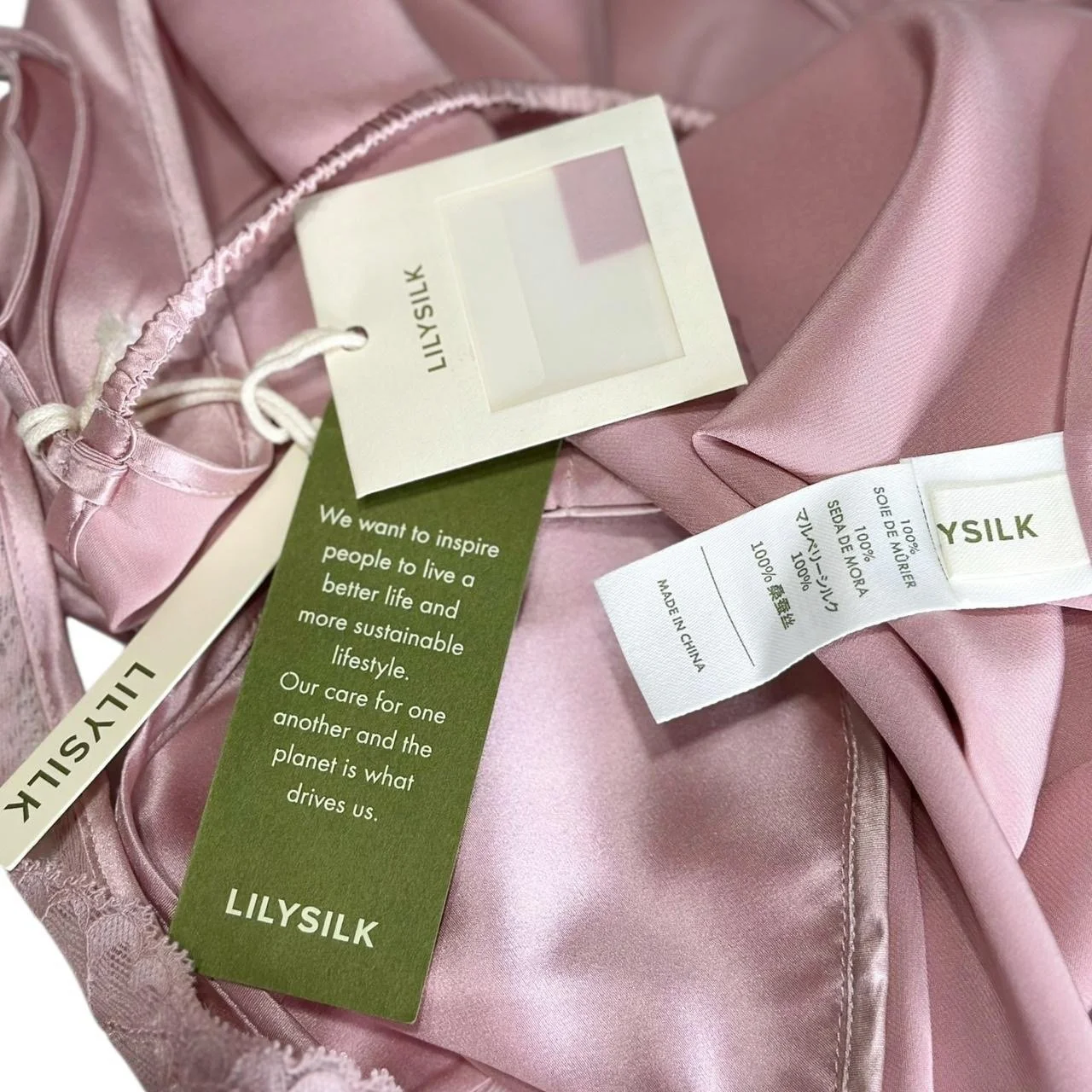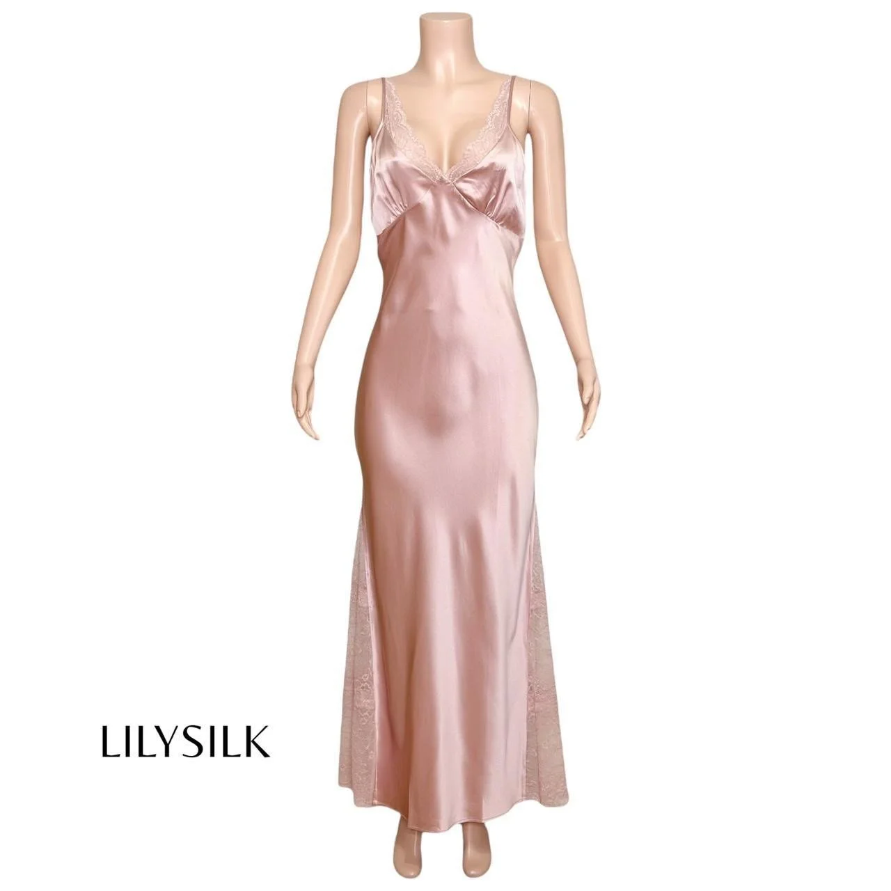 LILYSILK Full Length Mulberry Silk Lacy Nightgown, Rosy Pink, XL