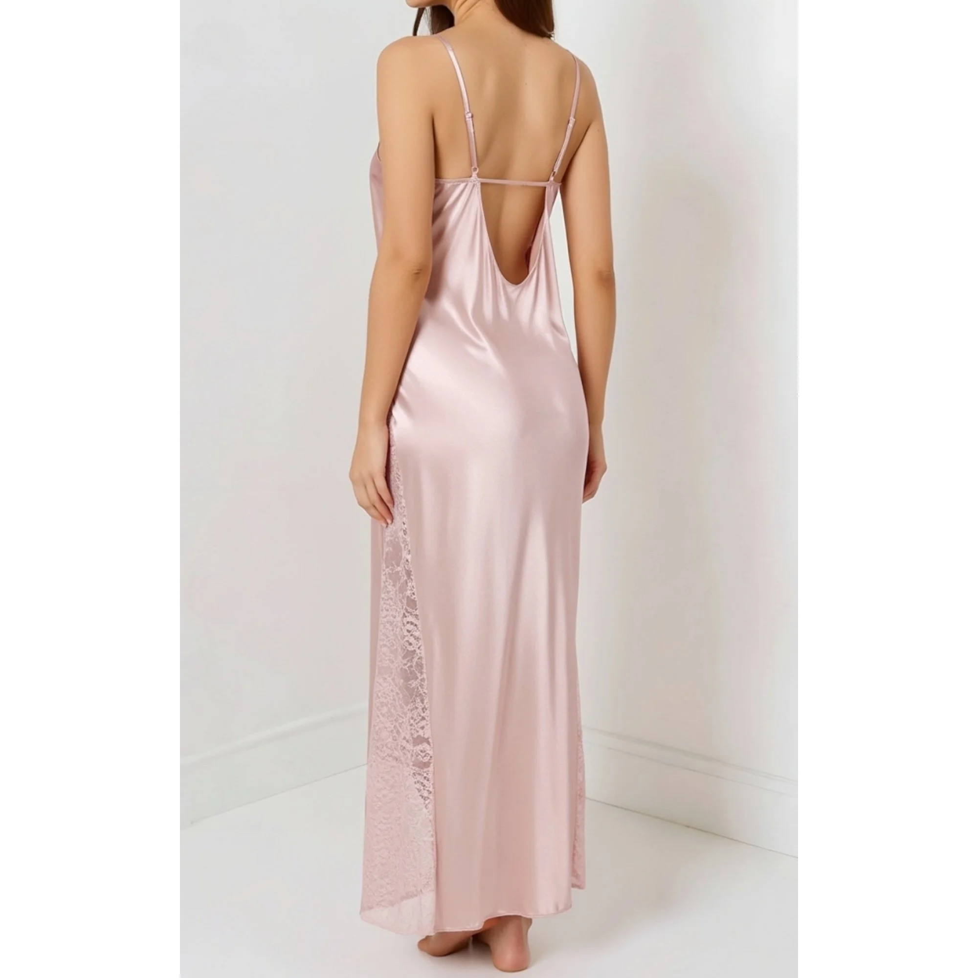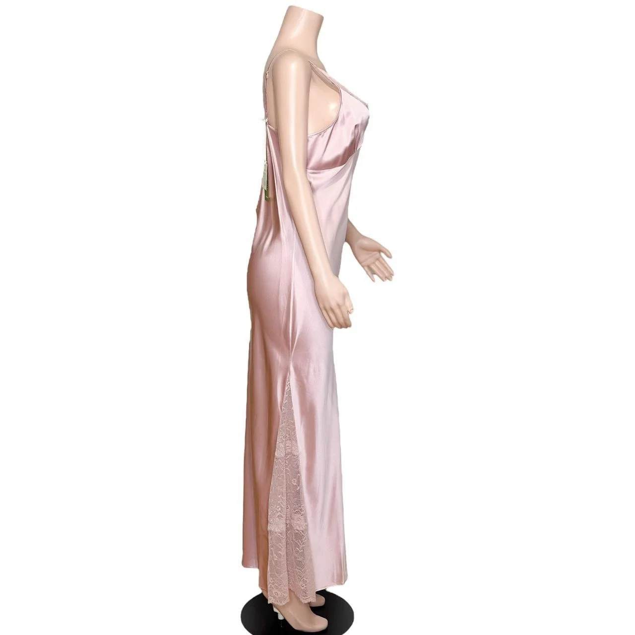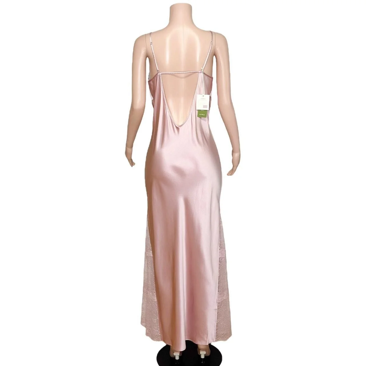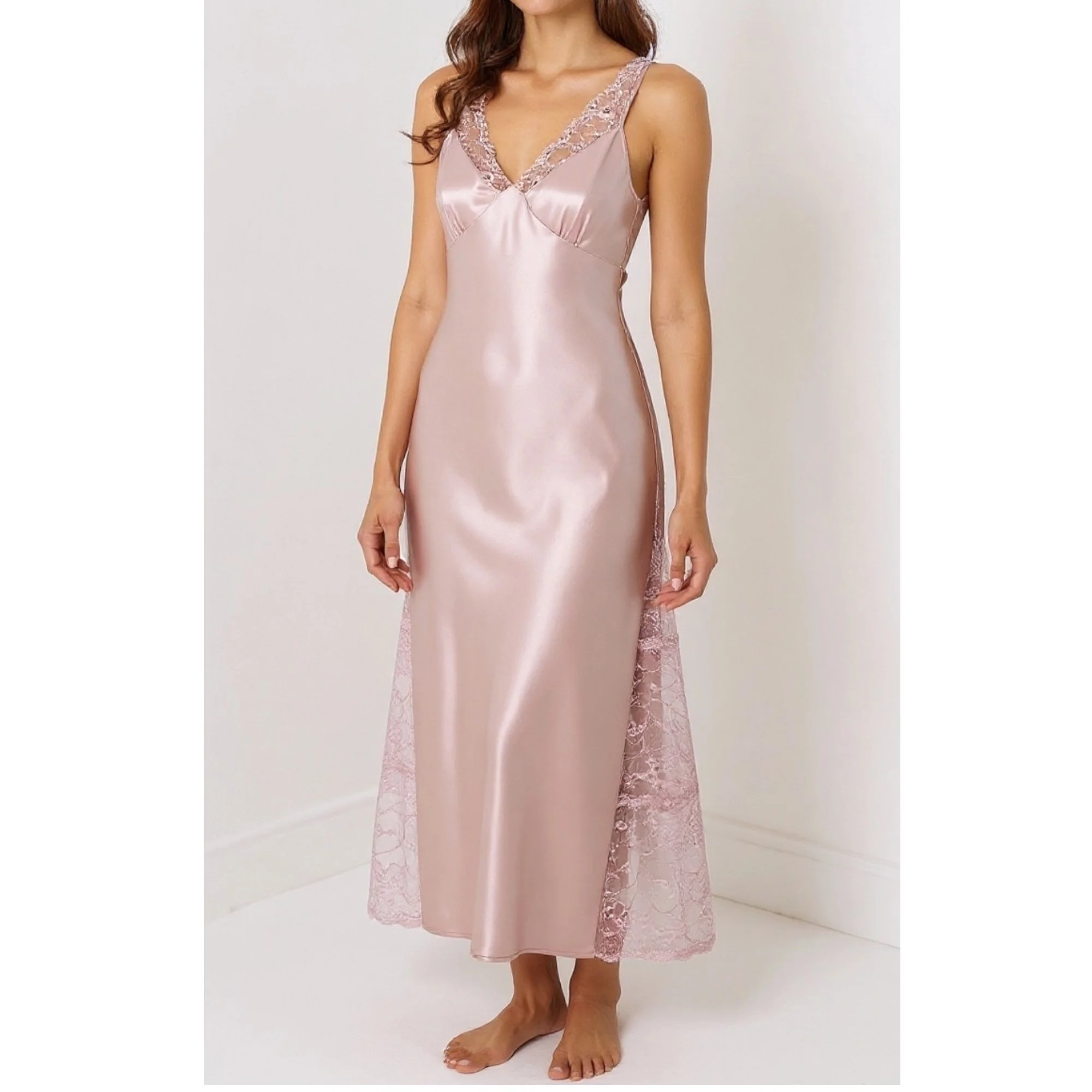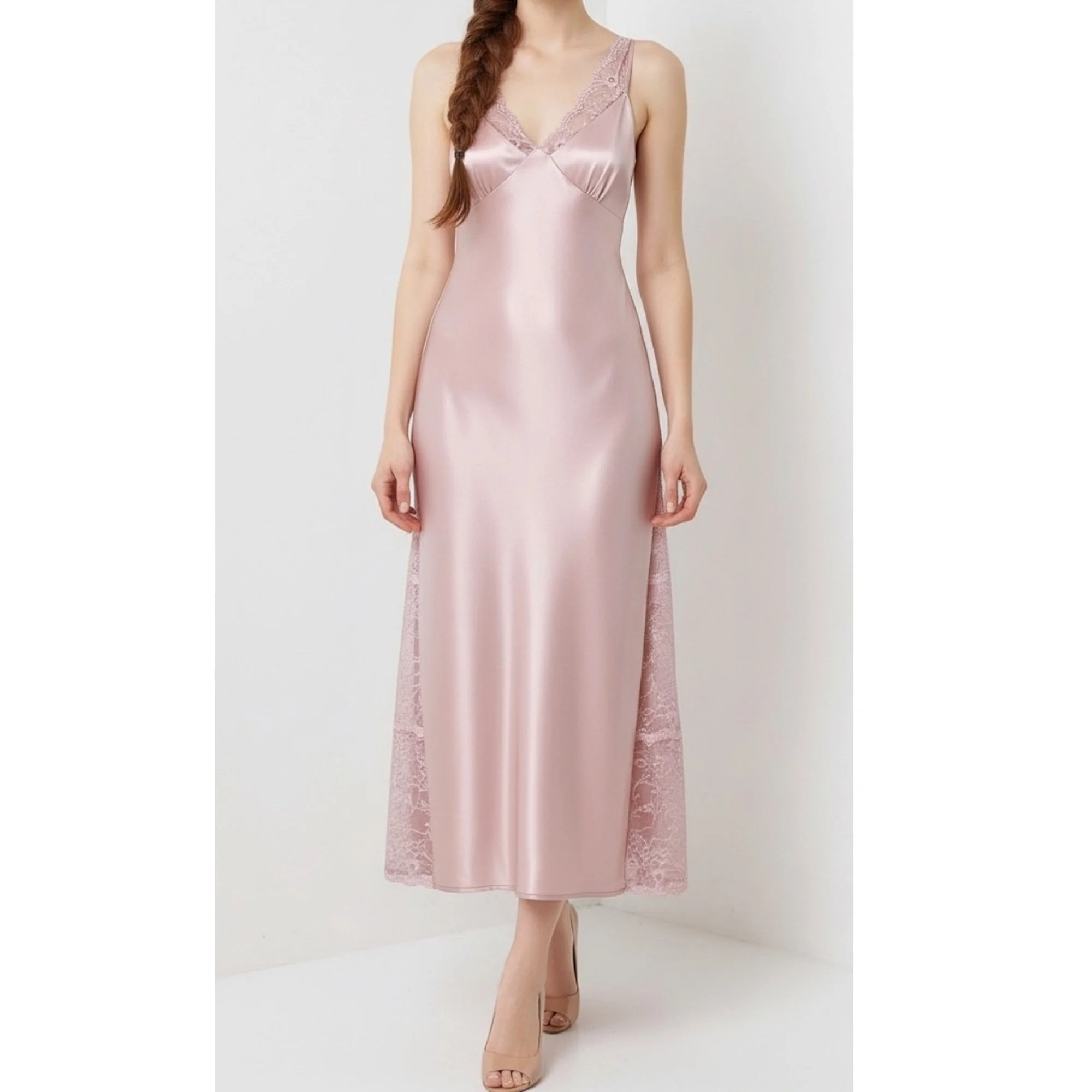 LILYSILK Full Length Mulberry Silk Lacy Nightgown, Rosy Pink, XL