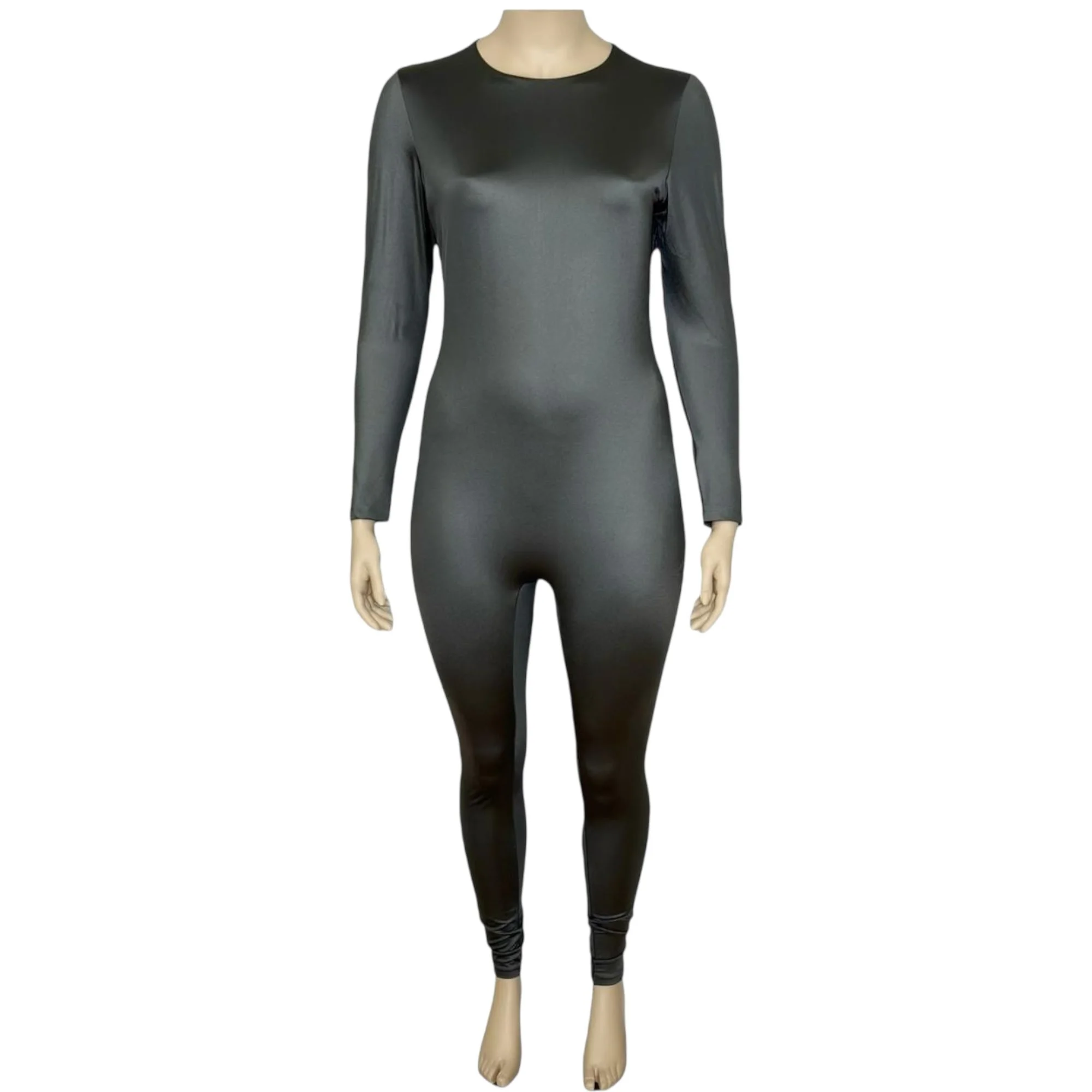 SKIMS All-In-One Shine Crew Neck Long Sleeve Jumpsuit, Gunmetal, 4X