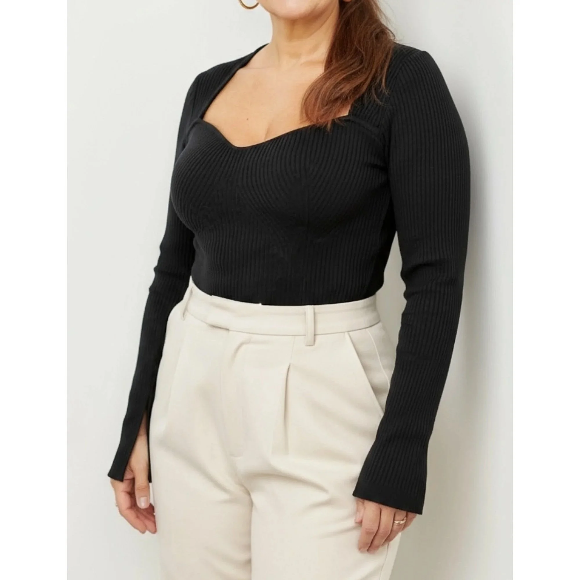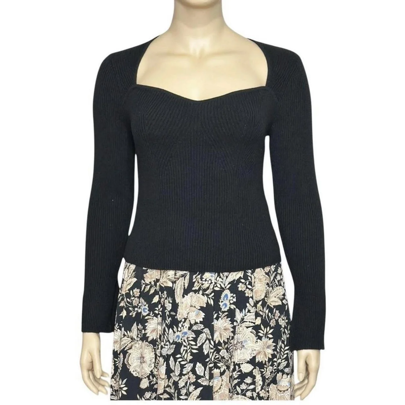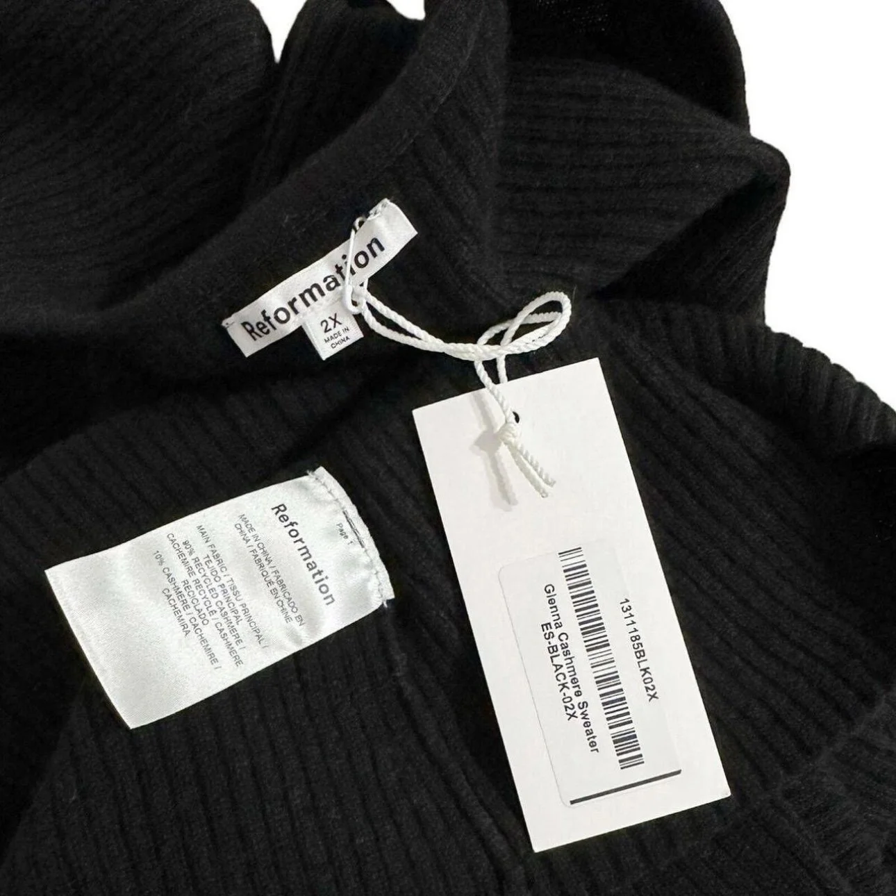 REFORMATION Glenna Ribbed Cashmere Sweater, Black, 2X