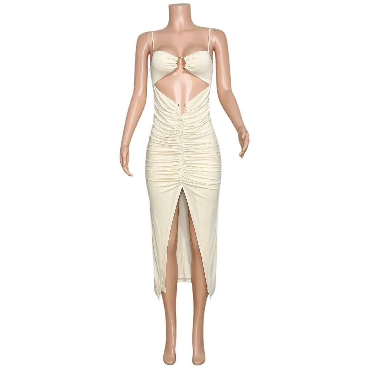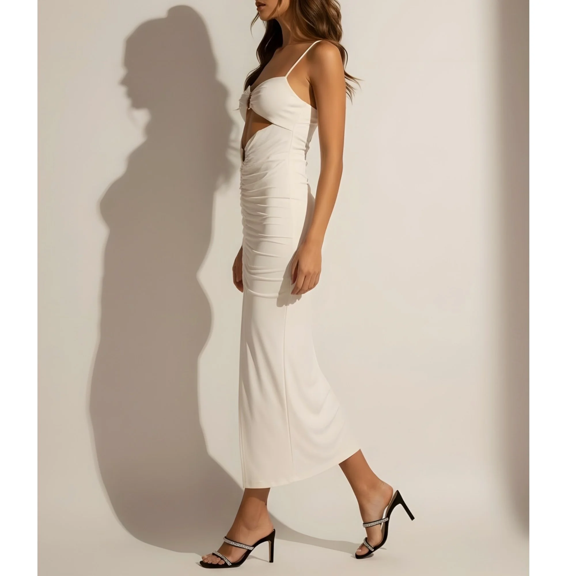 CAMILA COELHO Yasmeen Cut-Out Ring Detail Soft Jersey Midi Dress, Beige, Small