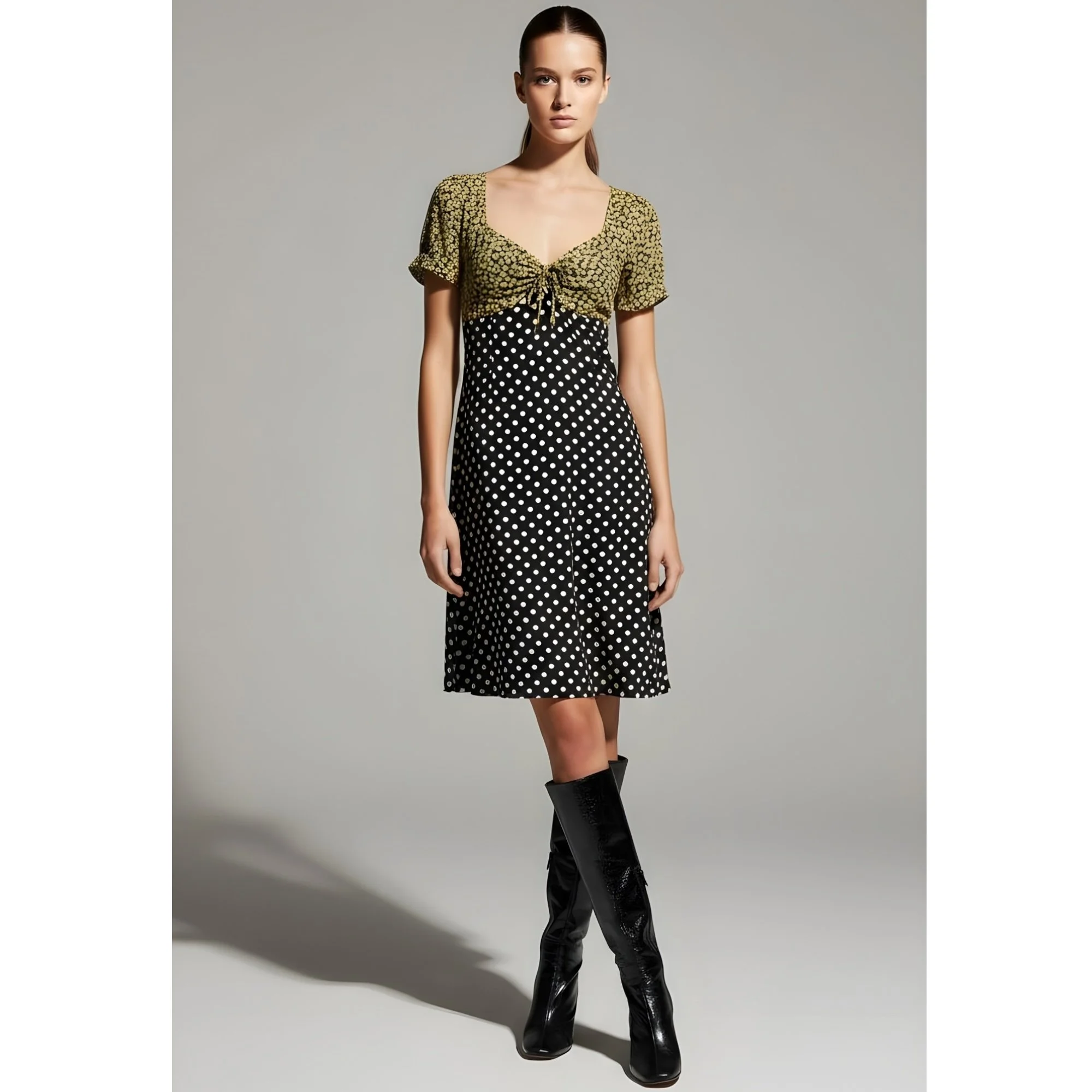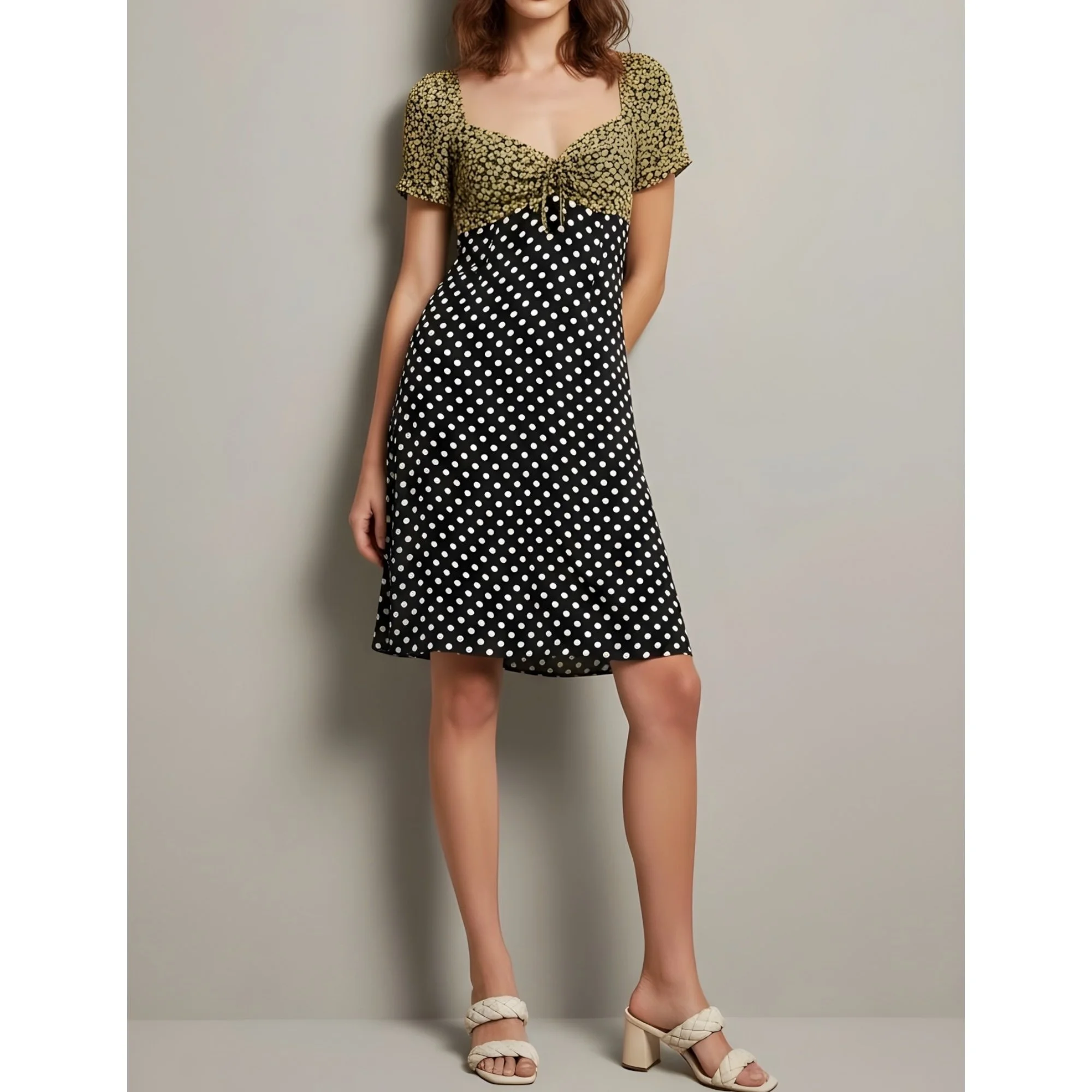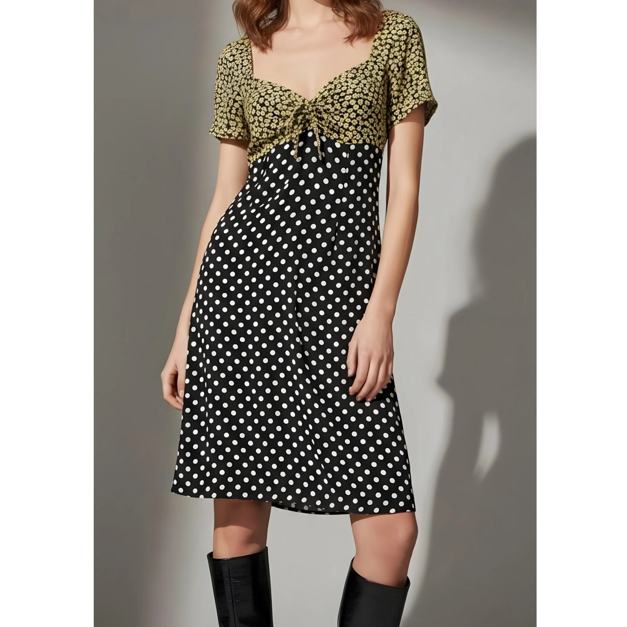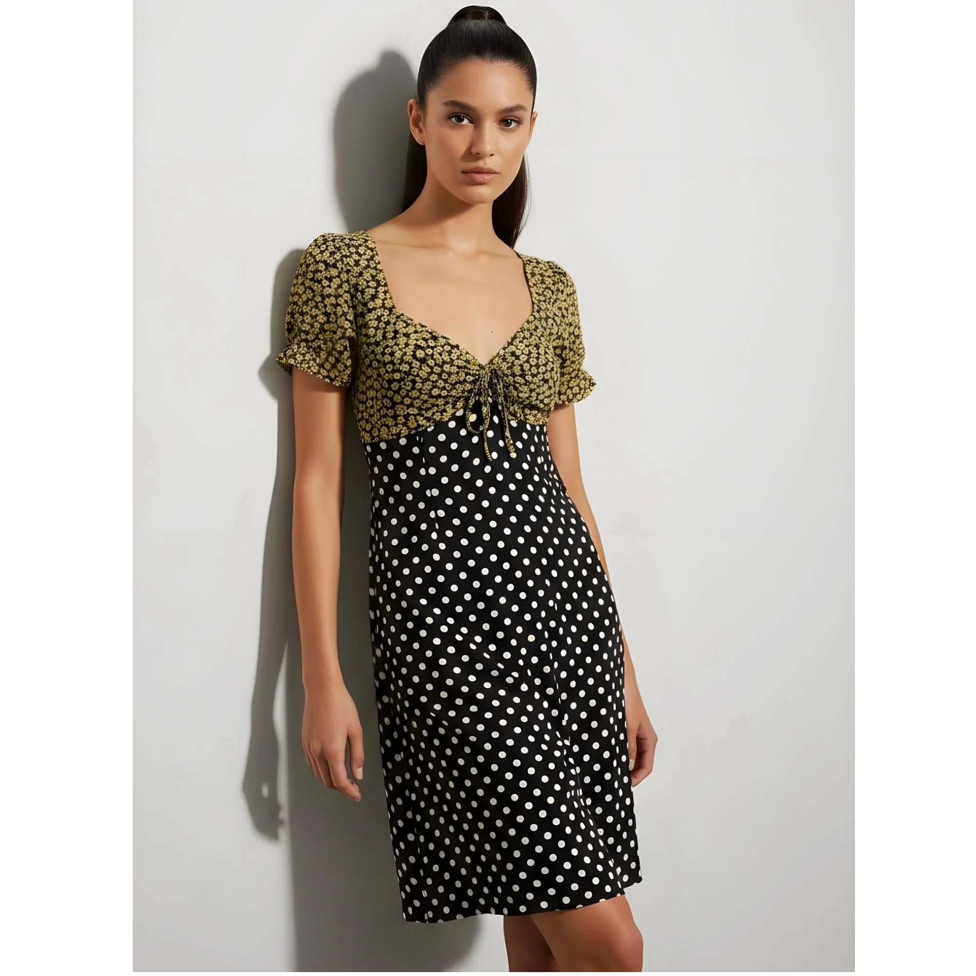 Polka dot and navy flower print