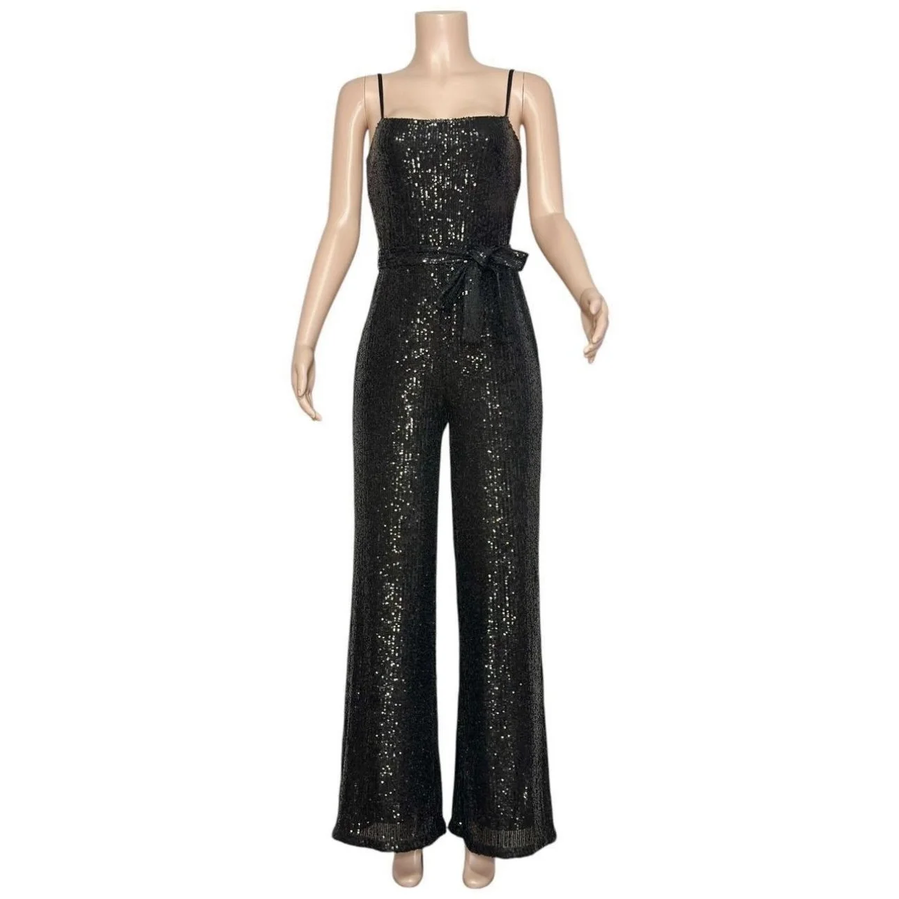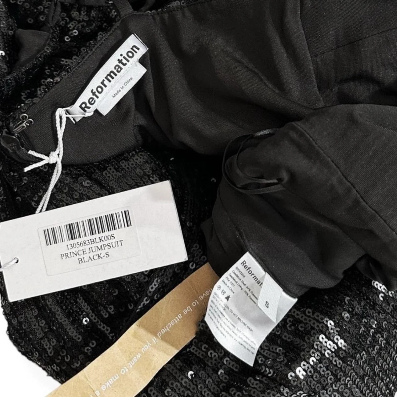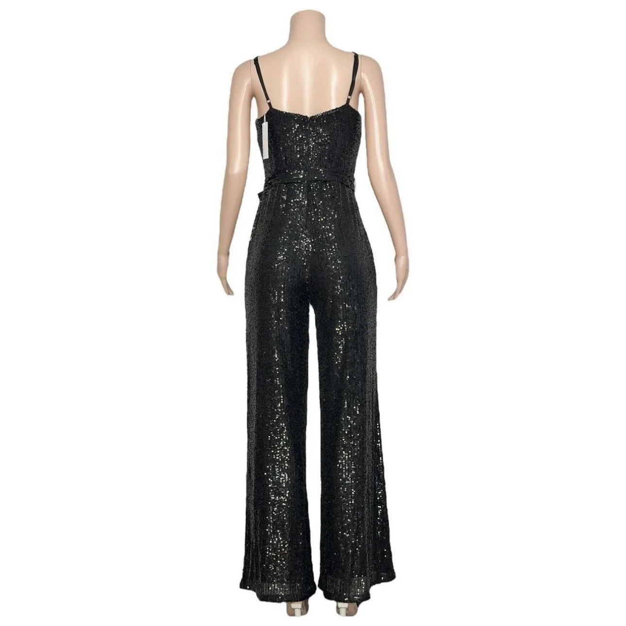 REFORMATION Prince Wide Leg Sequin Jumpsuit, Black, Small