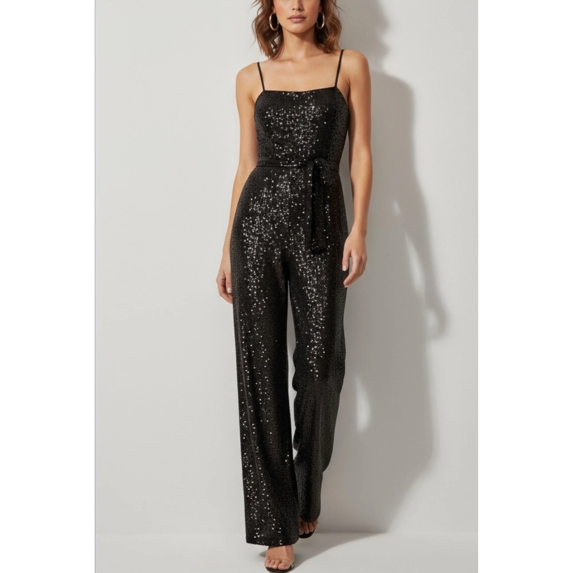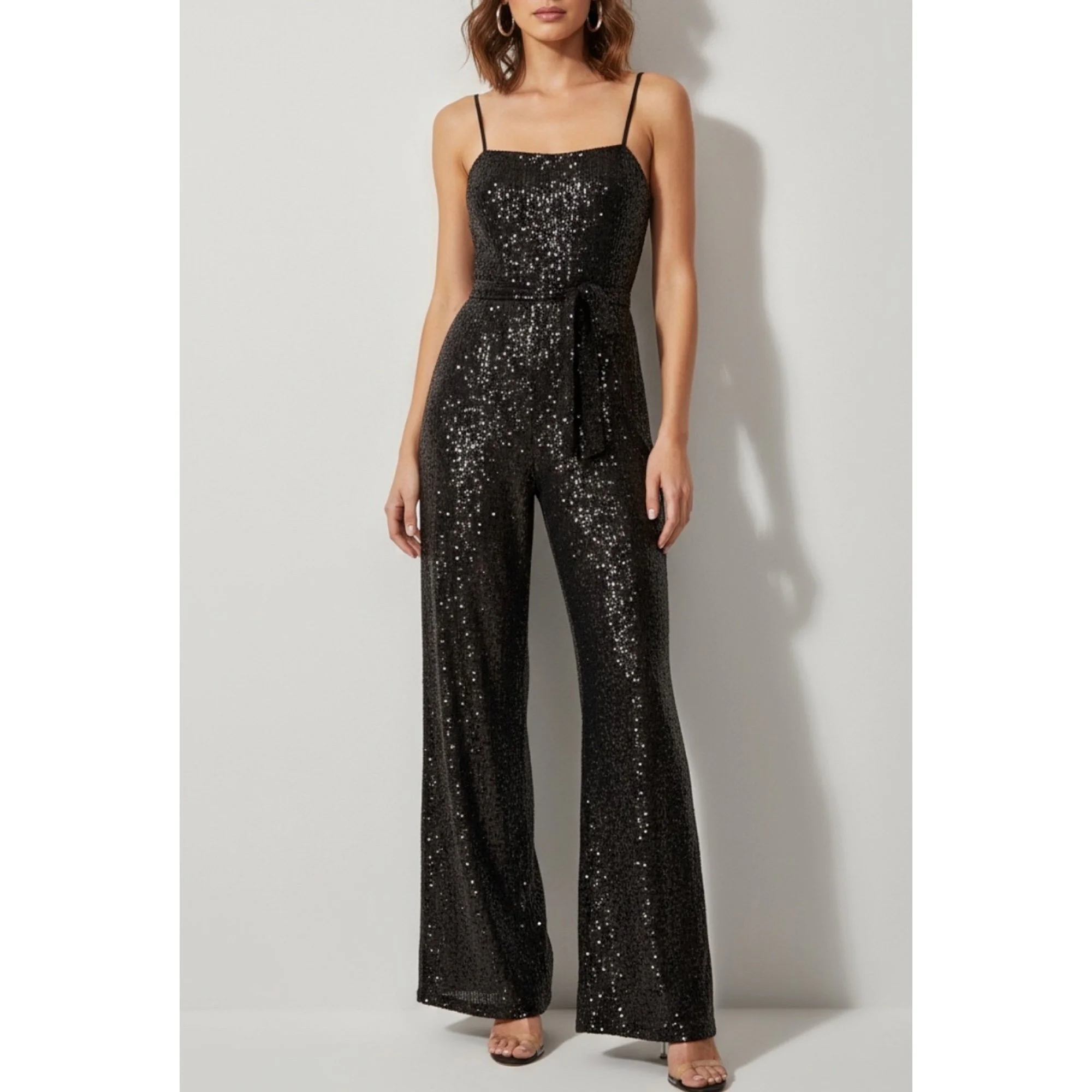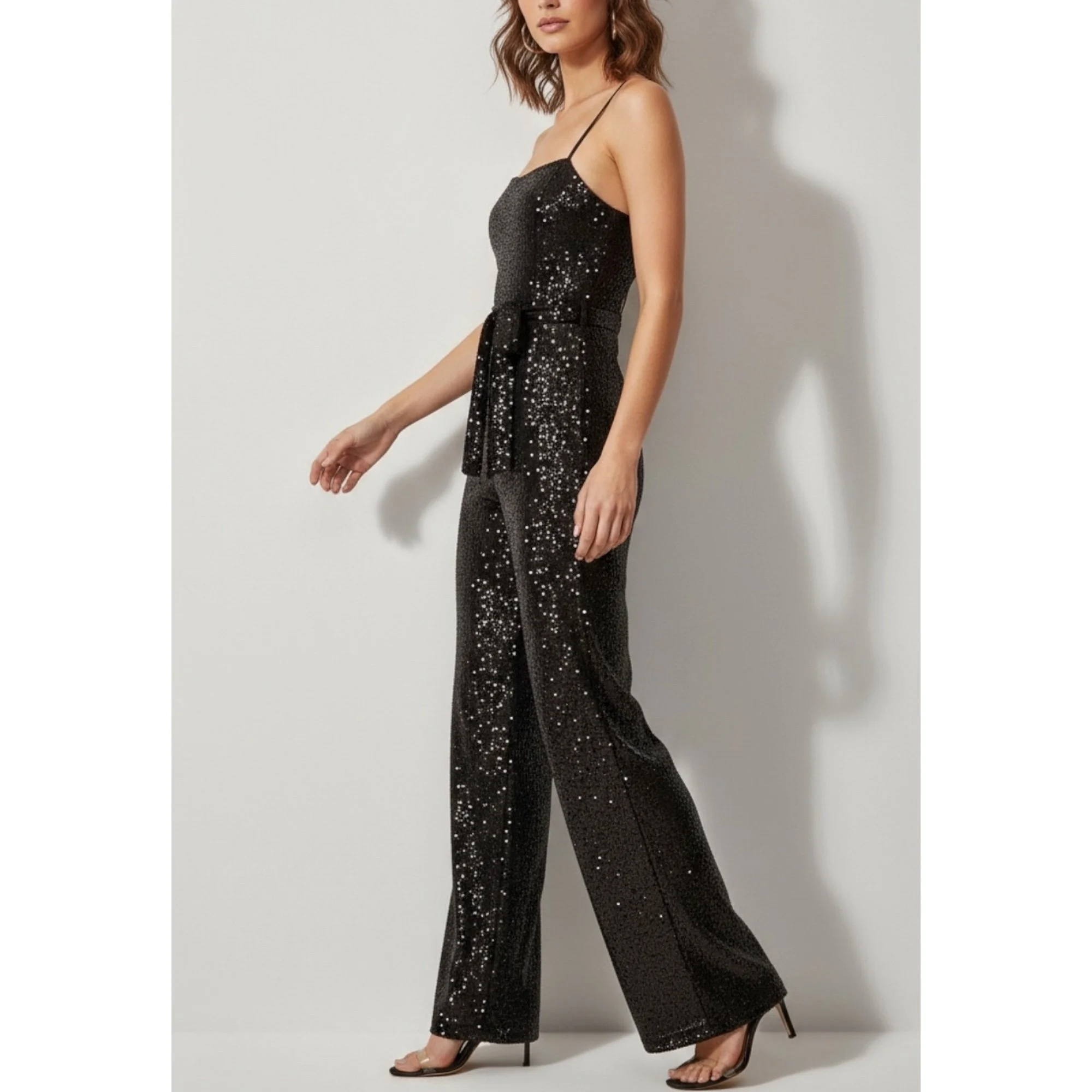 REFORMATION Prince Wide Leg Sequin Jumpsuit, Black, Small