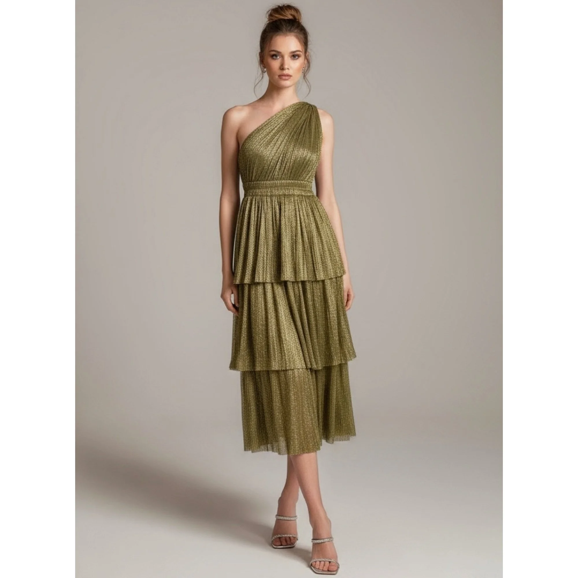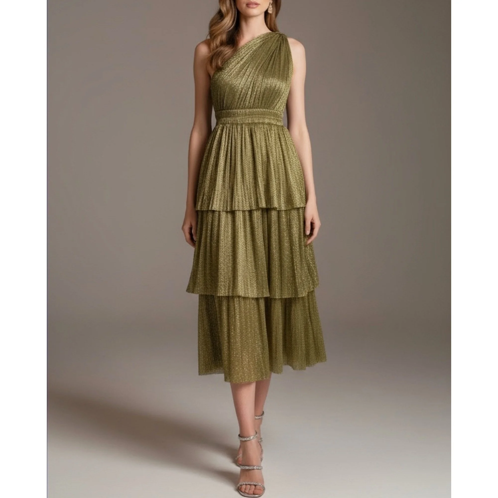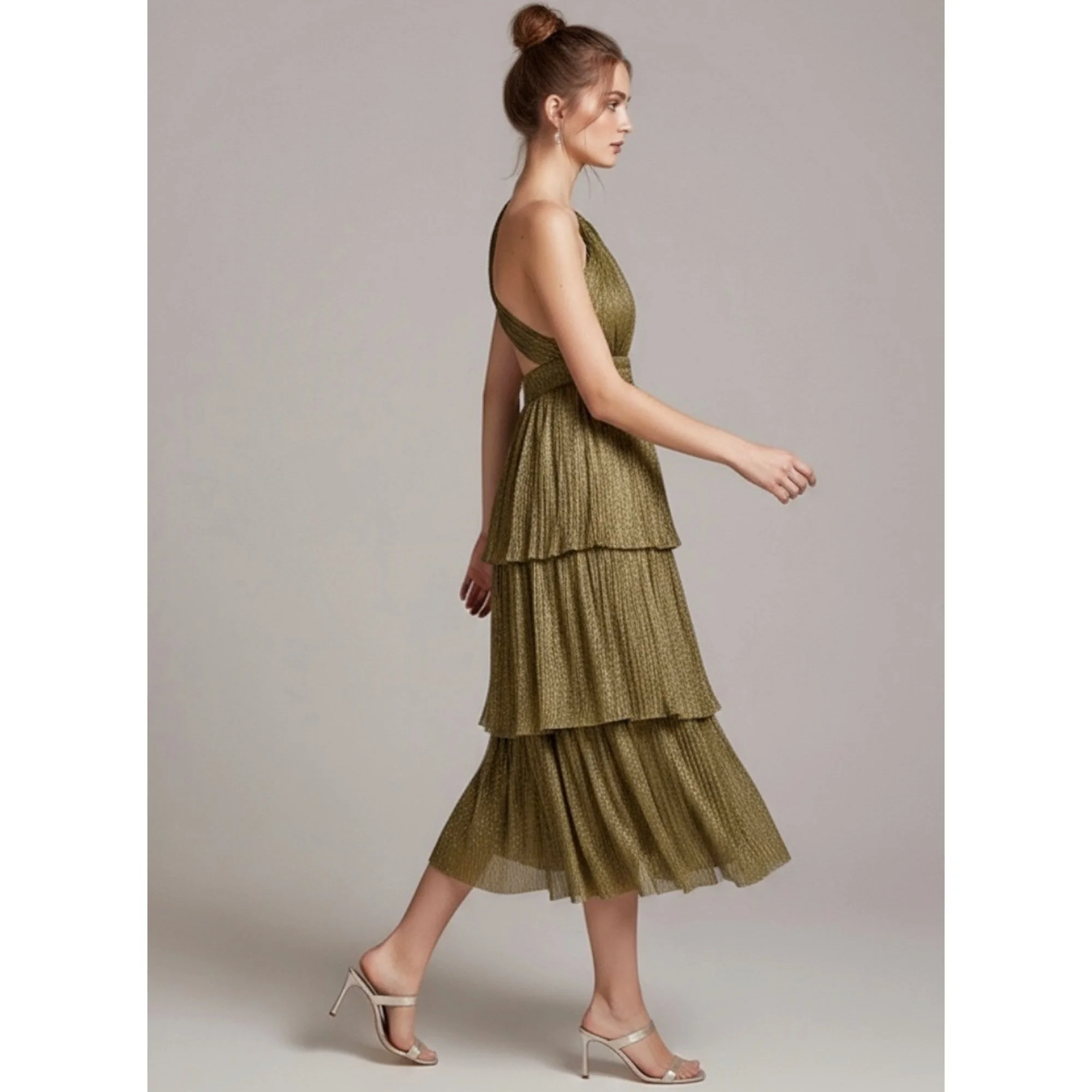SABINA MUSAYEV Isabello Plisse Midi Dress, Moss Green, Medium