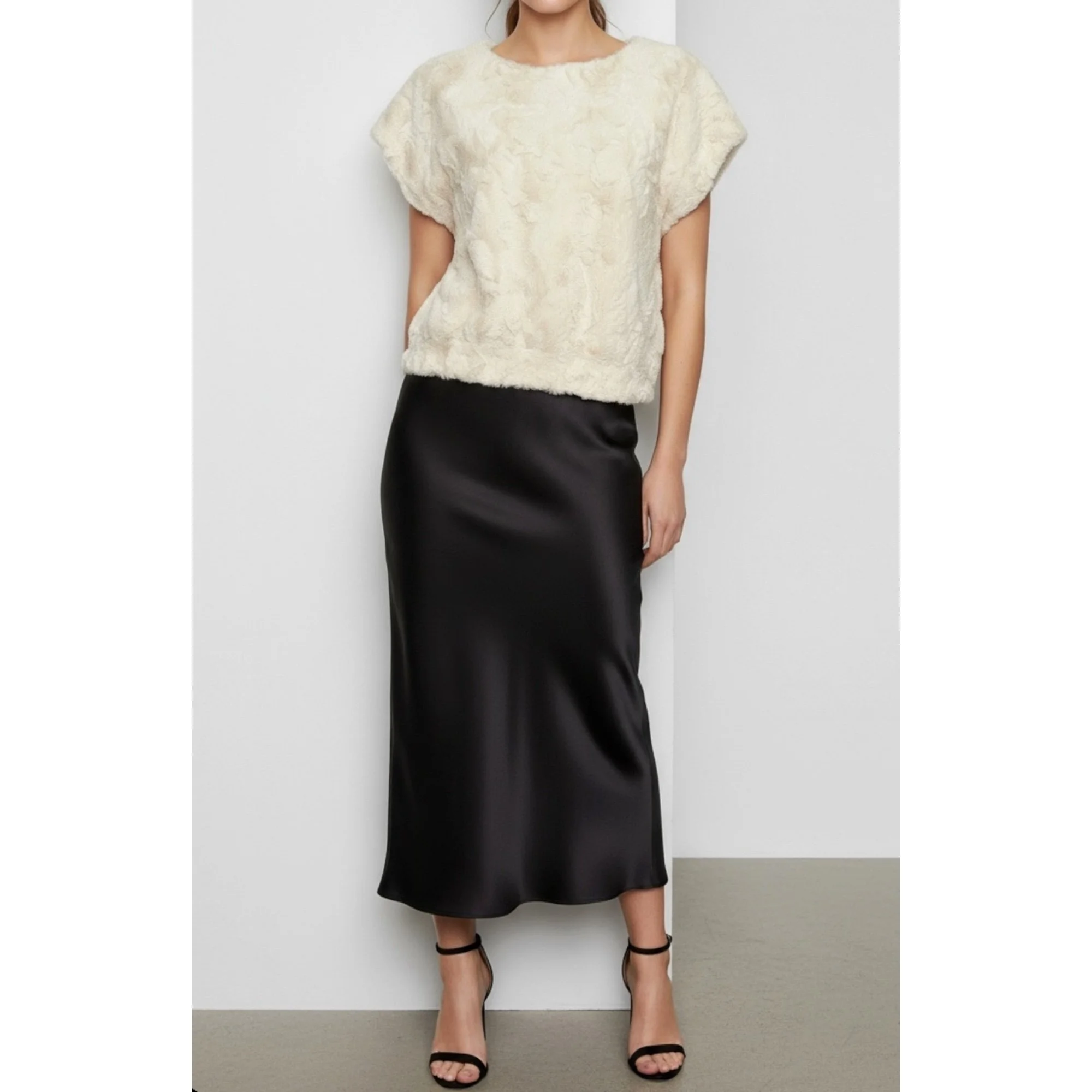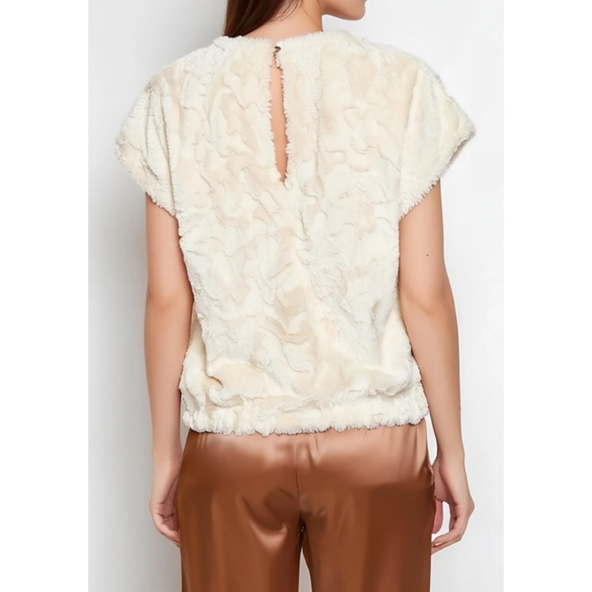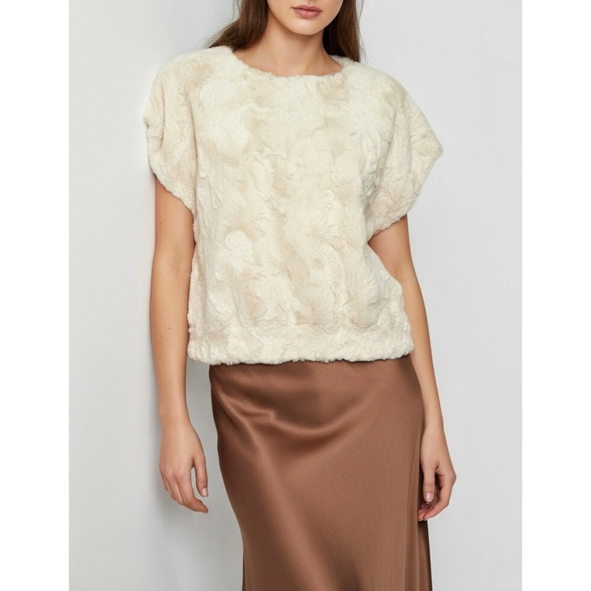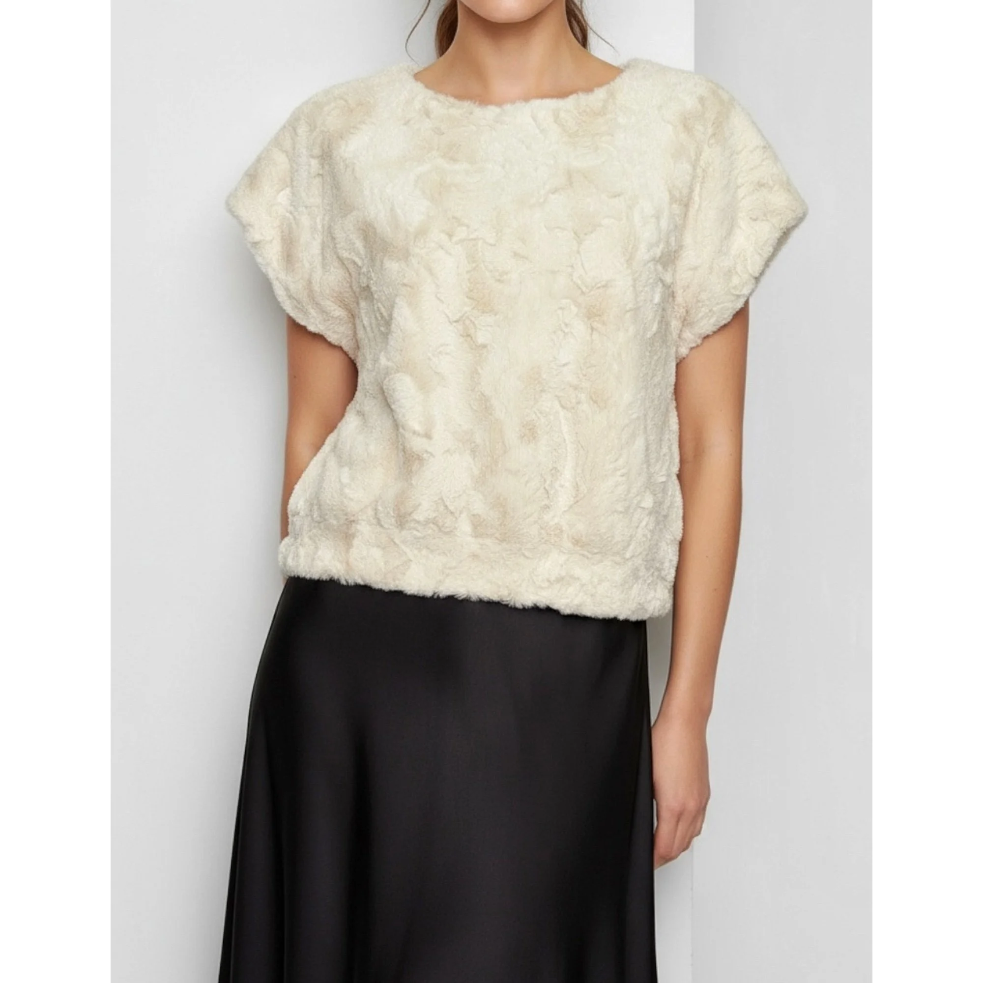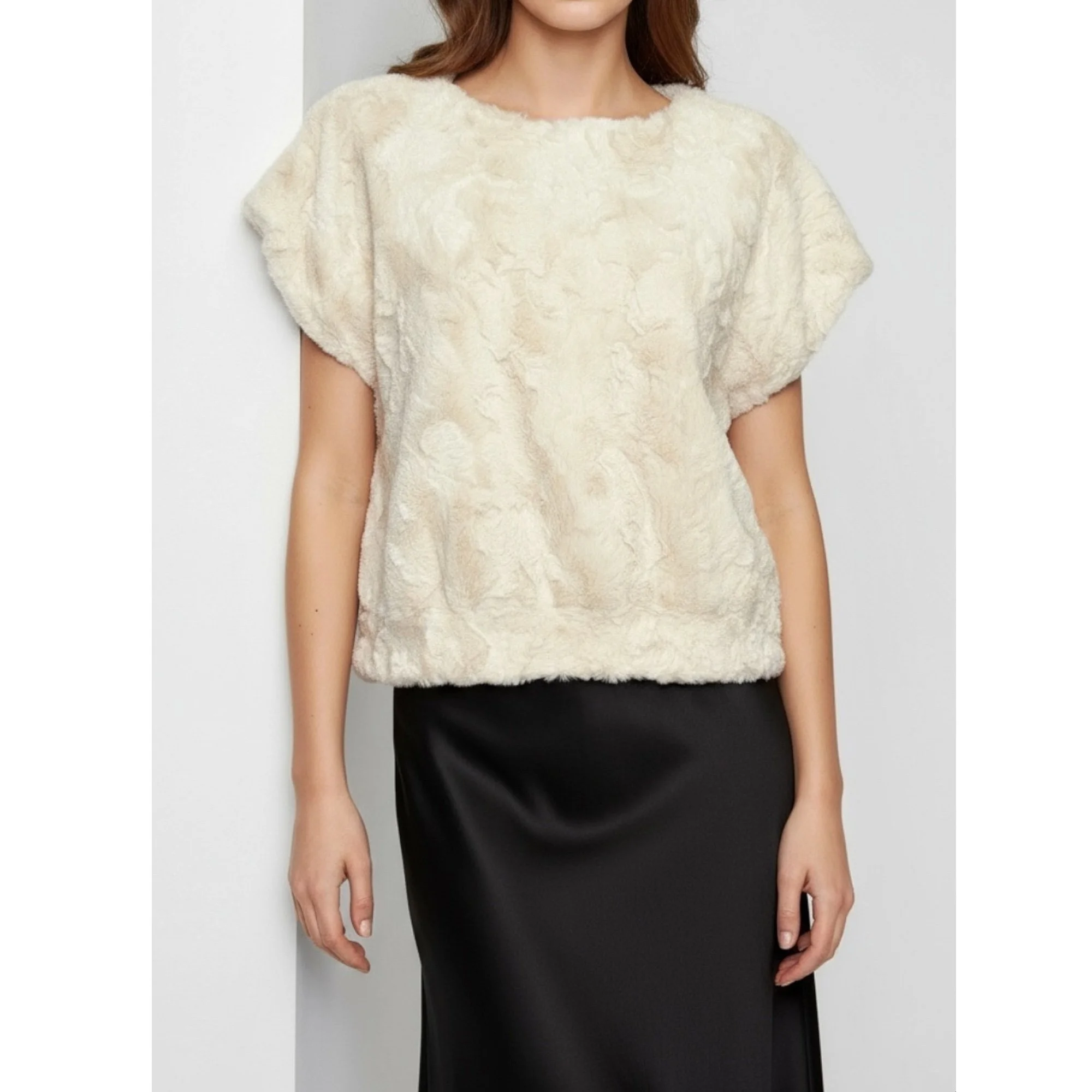 MAEVE x ANTHROPOLOGIE Faux Fur Tee, Cream, Small