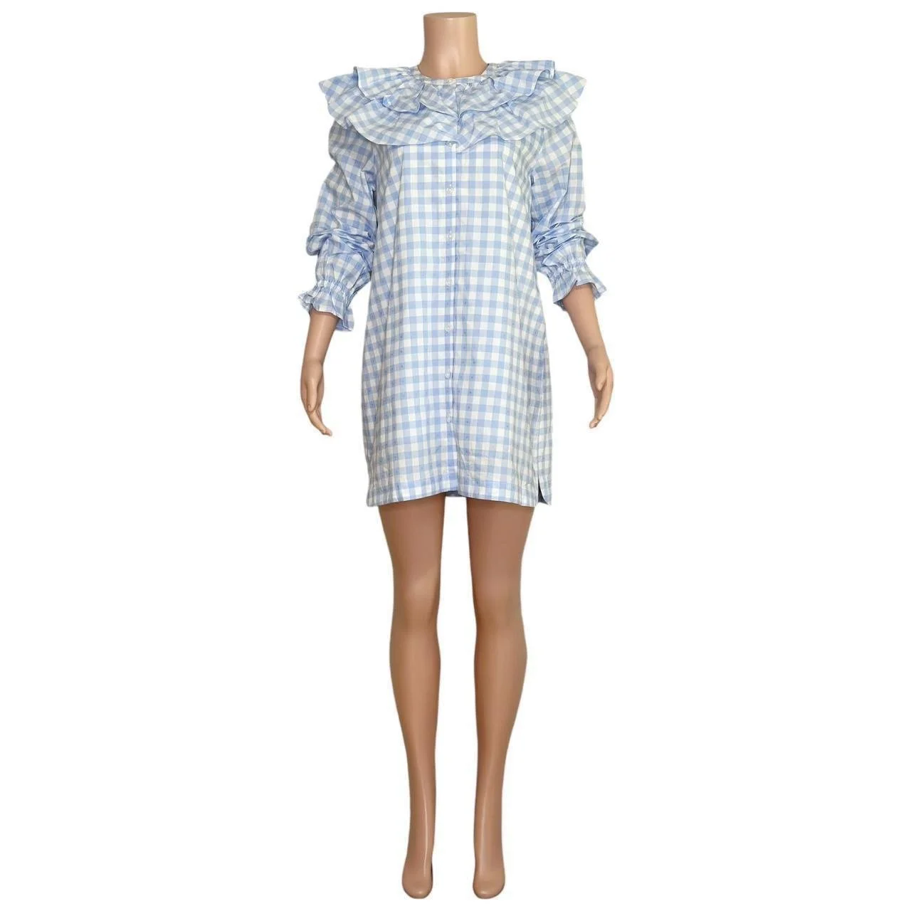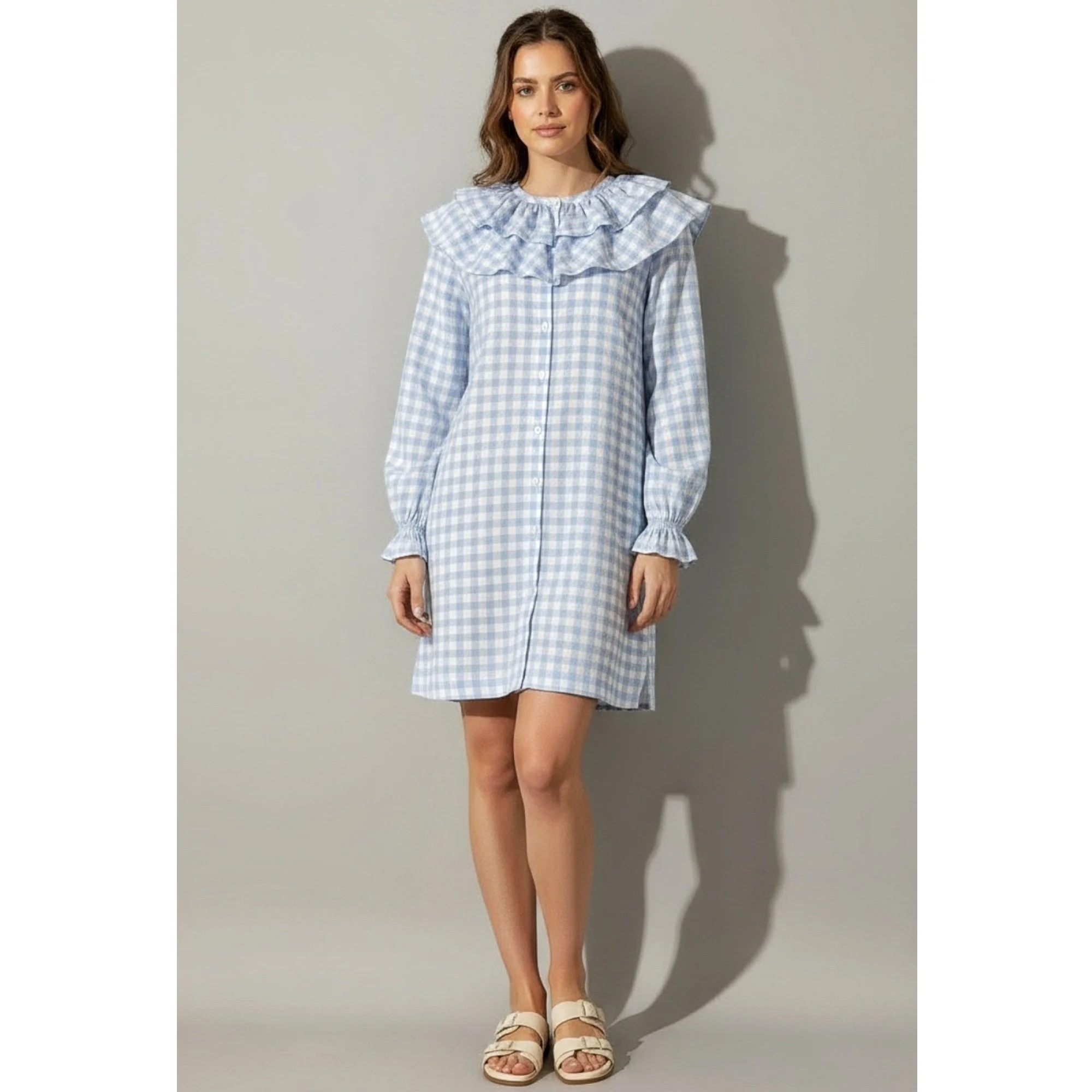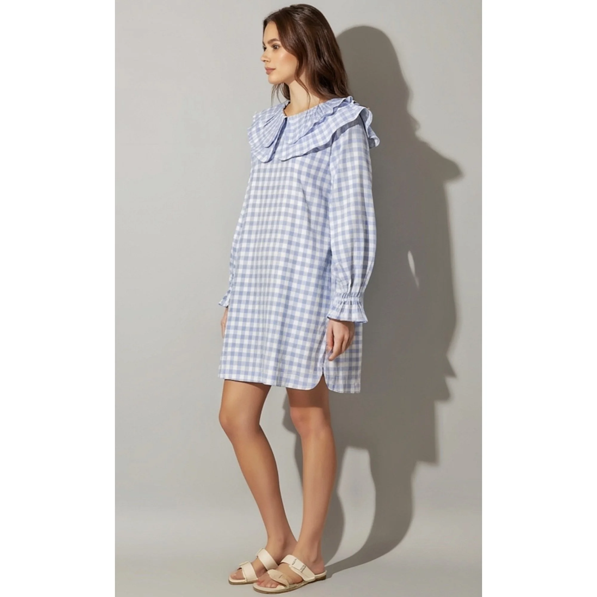 HILL HOUSE Colette Dress, Blue Jacquard Check, Small