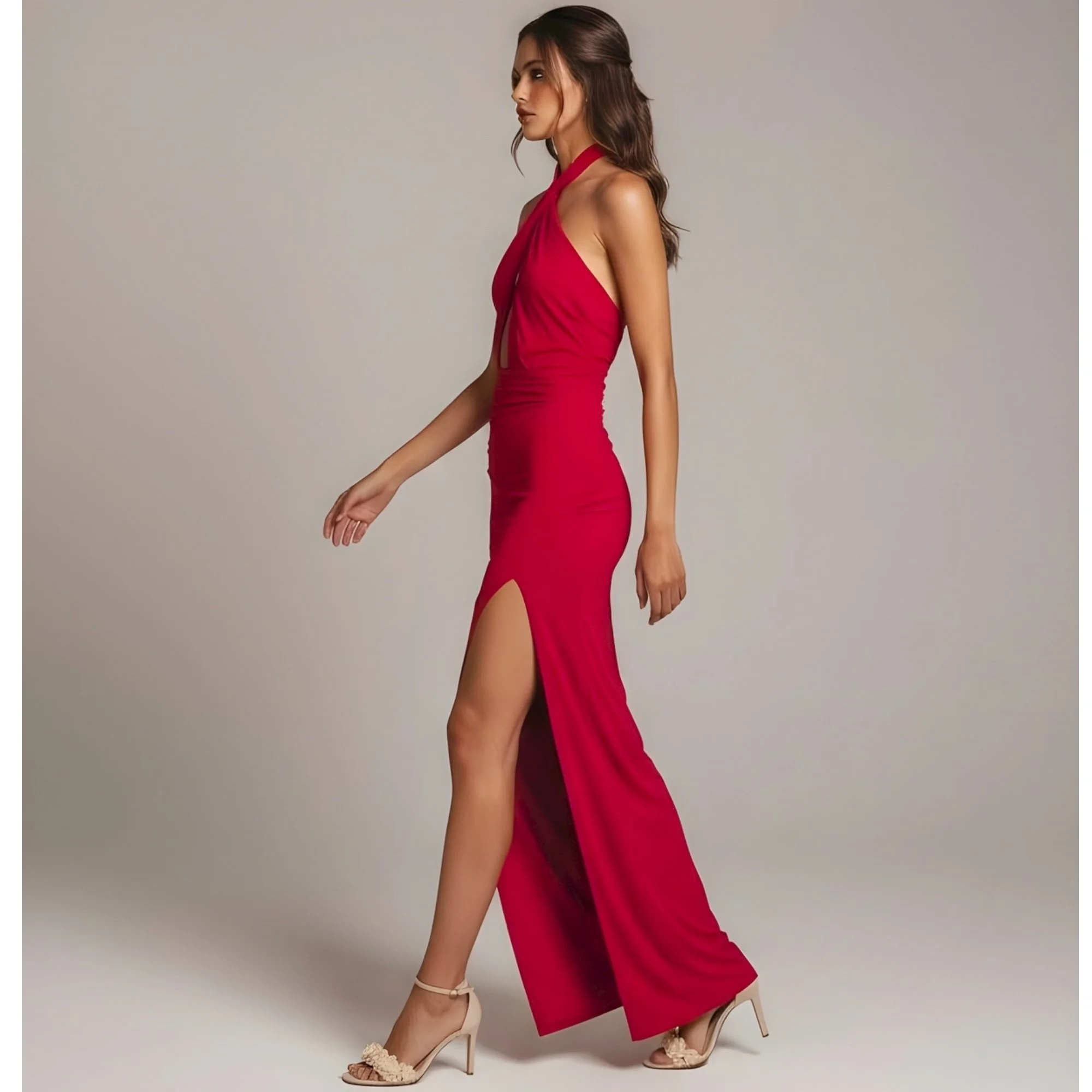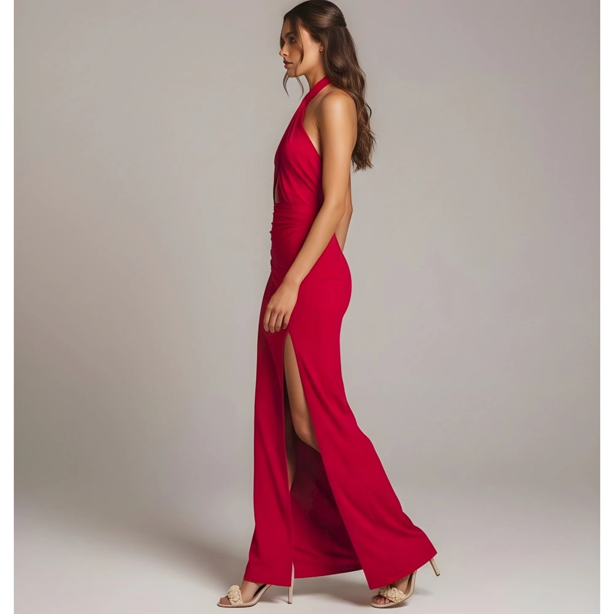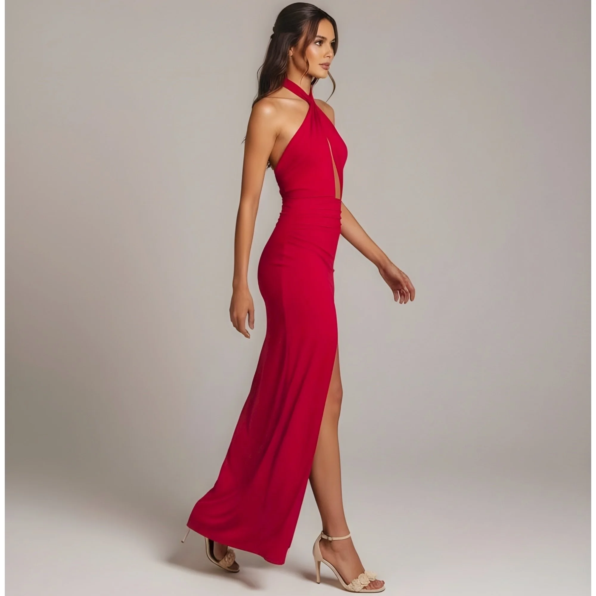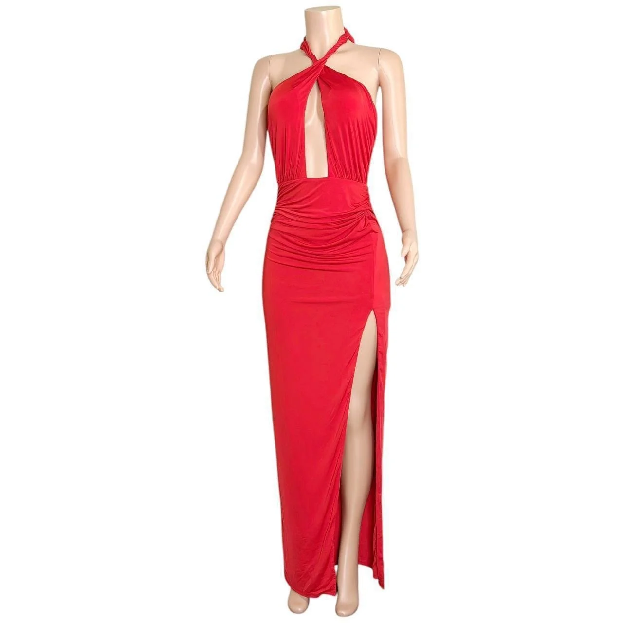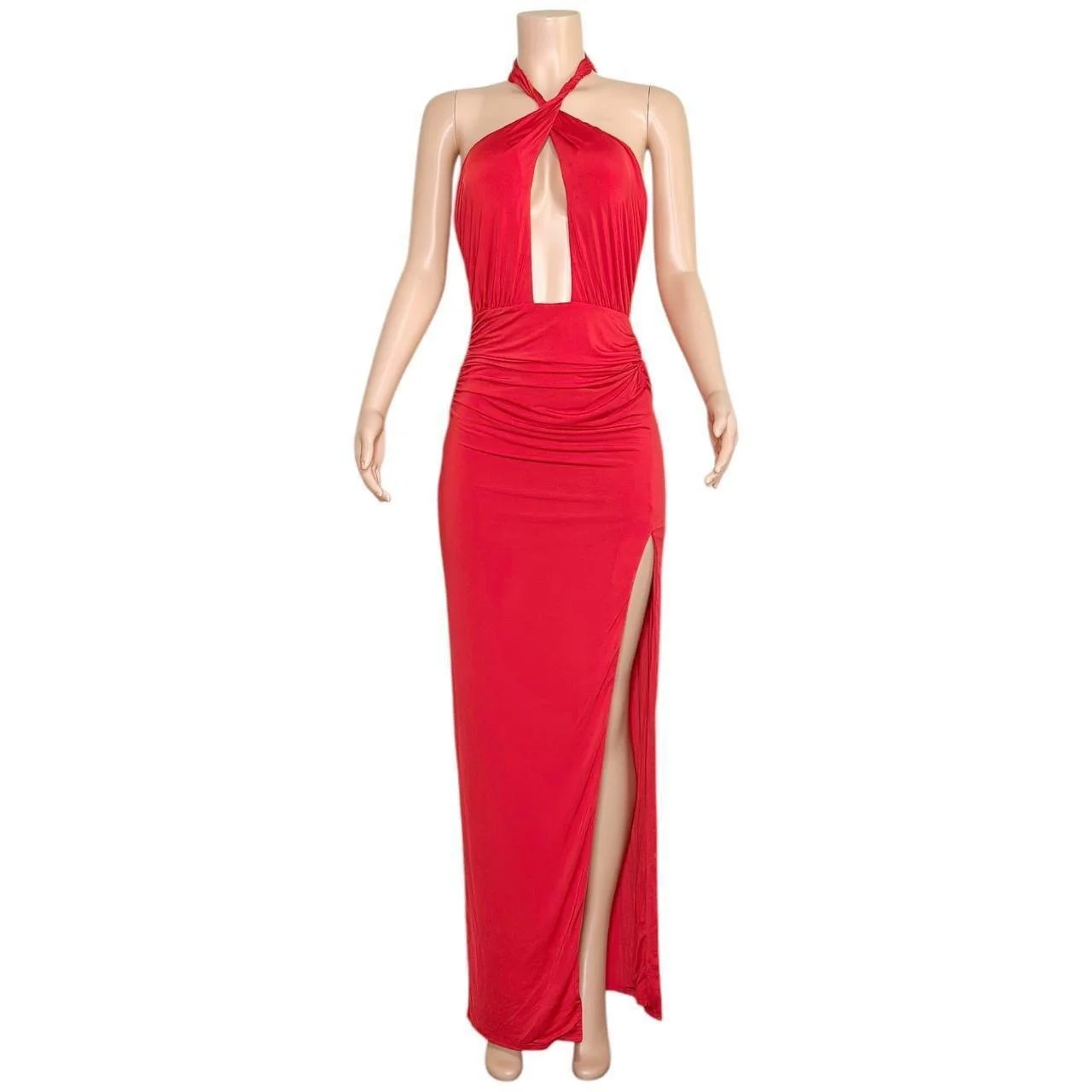 MICHAEL COSTELLO x REVOLVE Morgan Twist Halter Jersey Gown, Red, Small