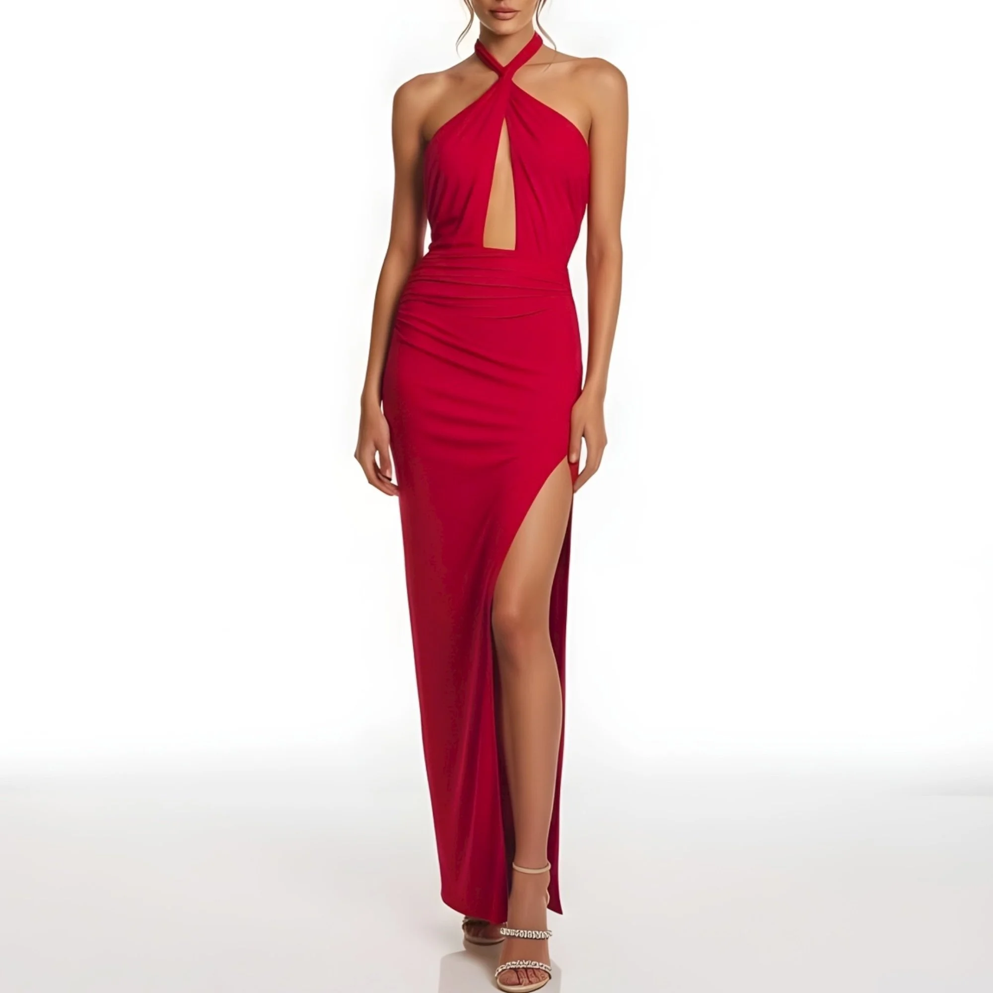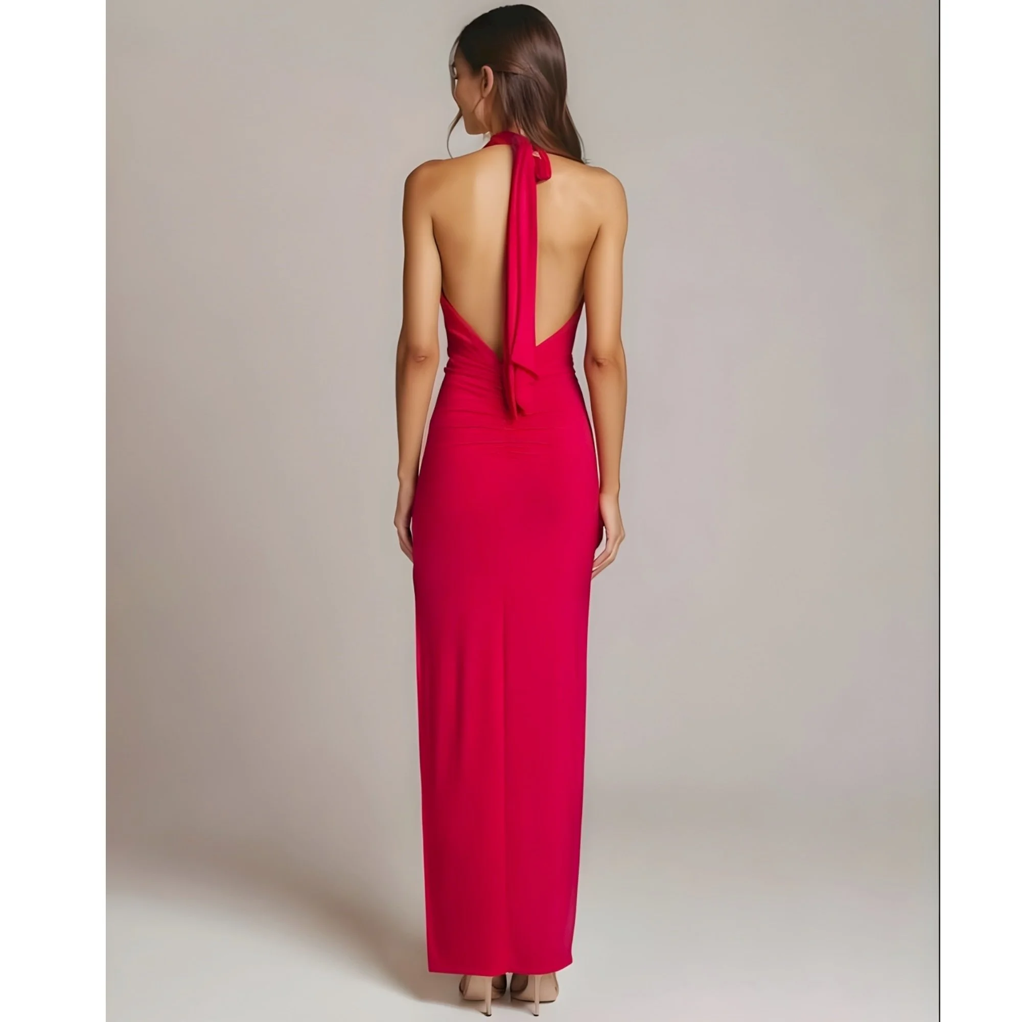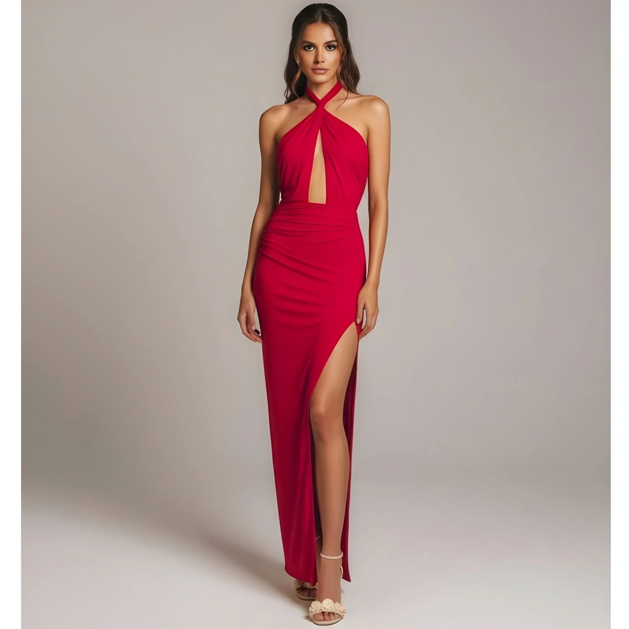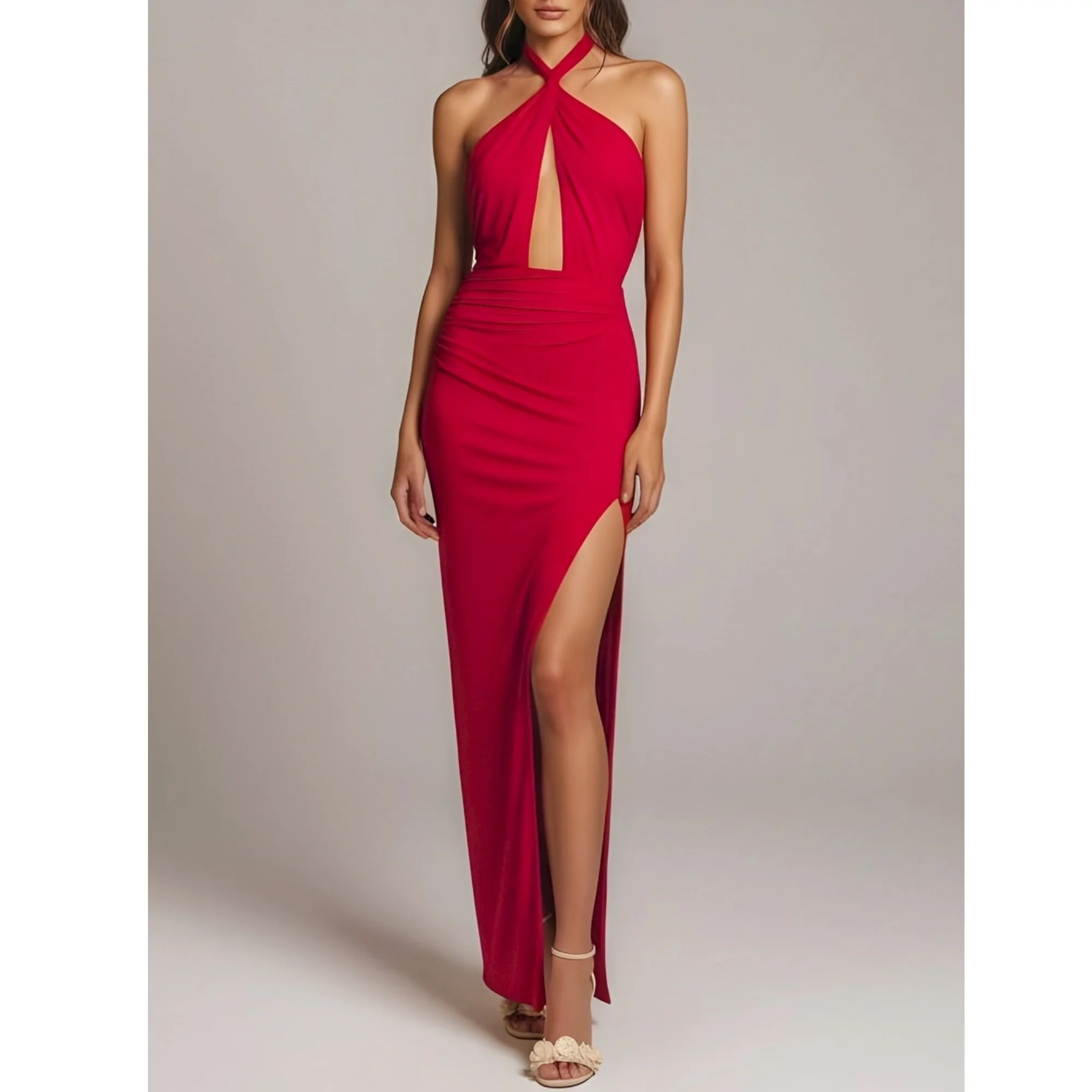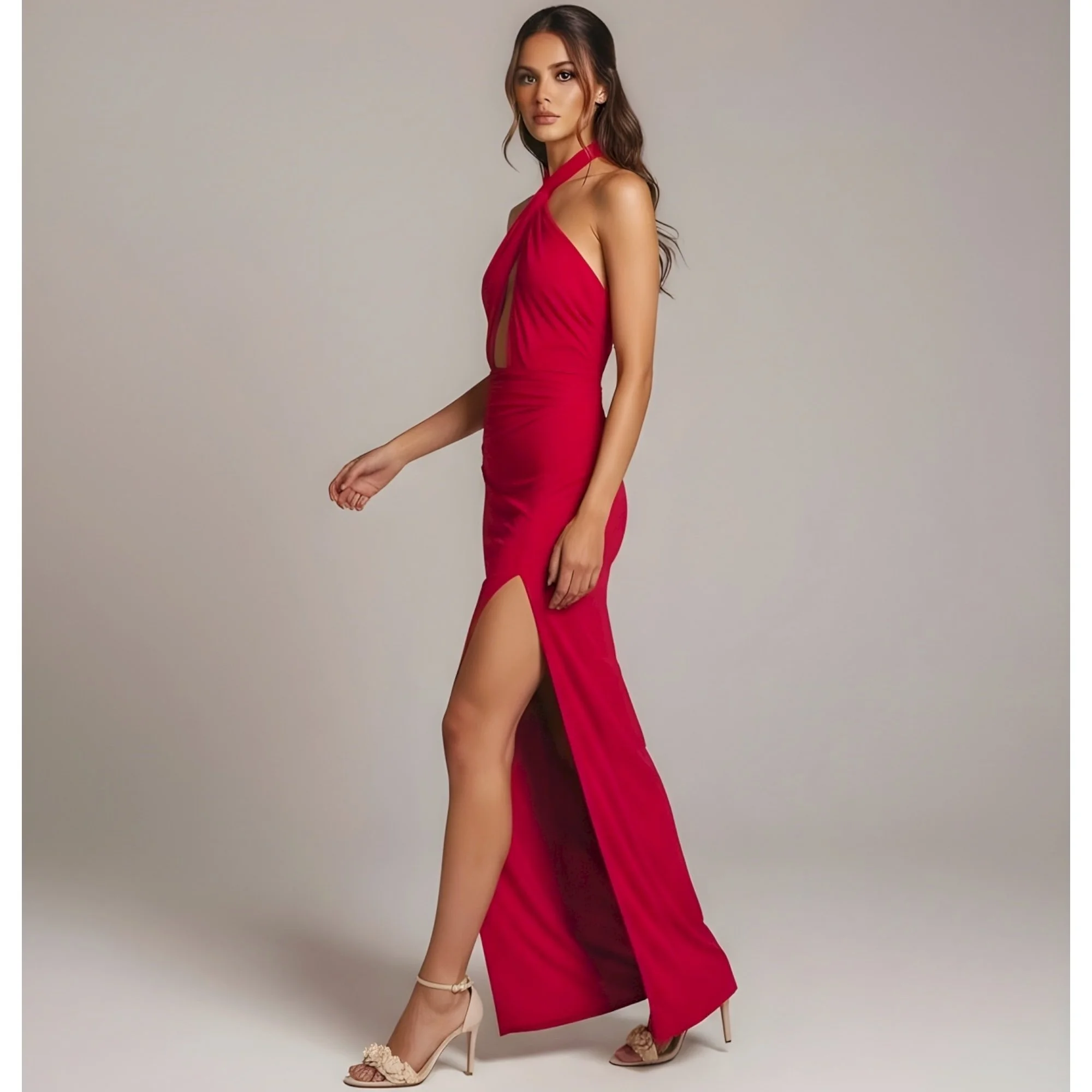 MICHAEL COSTELLO x REVOLVE Morgan Twist Halter Jersey Gown, Red, Small